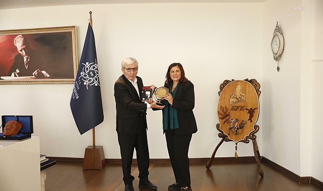 (AYDIN) - Belediye-İş Sendikası Genel Başkanı Nihat Yurdakul ve Aydın 1 No'lu Şube Başkanı Vasıf Süha Bayırlı, Aydın Büyükşehir Belediye Başkanı Özlem Çerçioğlu'nu ziyaret etti.Başkan Çerçioğlu, Belediye-İş Sendikası Genel Başkanı Nihat Yurdakul ve sendikanın Aydın 1 No'lu Şube Başkanı Vasıf Süha Bayırlı’yı ağırladı.Ziyarette Yurdakul ve Bayırlı, Başkan Çerçioğlu'nu çalışmalarından dolayı kutladı. Çerçioğlu ise ziyaretleri için Yurdakul'a ve Bayırlı'ya teşekkür etti.