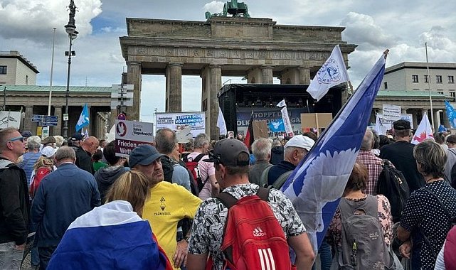 Berlin polisinin açıklamasına göre gösteriye yaklaşık 12 bin kişi katıldı. Organizasyon yetkilileri ise bu sayının 20 bine yaklaştığını belirtti. Göstericiler, barış sembolleri, beyaz güvercinli bayraklar ve “Free Palestine” (Filistin’e özgürlük) yazılı pankartlar taşıdı. Pankartlarda, savaşlara karşı müzakere ve diplomasi çağrısı yapıldı.