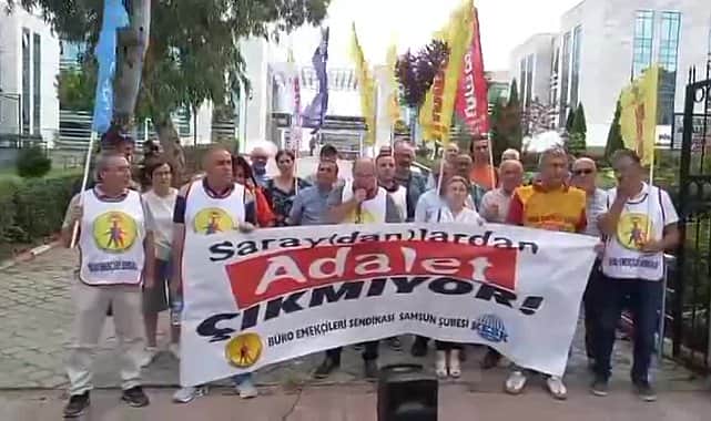 MEHMET REBİİ ÖZDEMİRAdli yılın açılışı nedeniyle Büro Emekçileri Sendikası (BES) üyeleri yurt genelinde açıklama yaparak yaşadıkları sorunlara dikkat çekti. BES Samsun Şube Başkanı Yılmaz Tuluk, “Samsun Adliyesi ile ilgili yetkililere sesleniyoruz! Ayrımcılık yapmayınız, diğer sendikalara verdiğiniz hakları bize de verin, eğitim salonlarını istiyoruz, çocuklarımız için halı sahası istiyoruz. Kurslar vermek, tiyatro oynatmak, türkü dinlemek ve kongre yapmak için konferans salonlarını istiyoruz” dedi.Adli yılın açılışı nedeniyle BES Samsun Şube Başkanı Yılmaz Tuluk, Samsun Adliyesi önünde bugün basın açıklaması yaptı. Taluk şunları söyledi:"YARGININ BAĞIMSIZLIĞI VE YARGI EMEKÇİLERİ İÇİN YILLARDIR MÜCADELE EDİYORUZ"“Yargının bağımsızlığını ve yargı emekçilerinin insanca yaşam ve insanca çalışma koşulları için mücadelemiz devam ediyor. Bu yargı yılı açılışında da bağımsız yargı ve yargı emekçilerinin taleplerinin karşılanması için mücadelemiz devam ediyor. Adalet talebinin her türlü talebin önüne geçtiği koşullarda, yargının bağımsızlığı ve yargı emekçilerinin sorunlarının çözümü için yıllardır mücadele ediyoruz. Yargı yılı açılış etkinliklerini taleplerimize dikkat çekmek için bir zemin olarak kullanmaya çalışıyoruz. 2010 referandumu sonrasında yargı alanında tahakküm kuran cemaat ve sonrasında mevcut iktidarın yargı sistemini iktidarlarını güçlendirmek ve toplumsal muhalefeti susturmak için bir araç olarak kullandığı bir süreci yaşıyoruz. Hukuksuz bir şekilde KHK ile ihraç edilen on binlerce kamu emekçisi, toplu sözleşme masasında çoğunluğunu siyasi iktidarın belirlediği hakem heyetinin kararlarına yargı yolunun kapalı olması, eski iç işleri bakanının kolluk kuvvetlerine hukuk kurallarının dışına çıkarak kollarının bacaklarının kırılması talimatını rahatlıkla vermesi, mafya liderleri ile siyasi liderlerin birlikte fotoğraf kareleri vermesi, toplumsal muhalefetin en yoğun olarak yaşandığı gezi olaylarında hukuk dışı kararların verilmesi anti demokratik ve eşit olmayan bir şekilde gerçekleşen seçimlerde YSK’nın kararlarının hem yanlı olması hem de yargı yolunun kapalı olması Milletvekillerinin, tutuklanması, seçilmiş belediye başkanlarının yerine kayyum atanması, kayyum atayamadıkları belediyeleri zapt-ı raptı altına almak için akla hayale gelmeyecek yöntemleri kullanmaktan geri durmayan cumhur ittifakının anayasayı askıya aldığı bir dönemde göstermelik demokrasicilik oynanarak yargı yılı açılışları yapılmaktadır."YARGI YILI AÇILIŞI SARAY’DA YAPILDI"Cezasızlık politikaları nedeniyle bir yandan kadın cinayetlerinin 21 yıllık AKP iktidarında her yıl artarak devam etmesi kadın cinayetlerinin bu kadar arttığı bir dönem İstanbul Sözleşmesinden bir imza ile çekilmek, adalet arayışının sosyal medyada örgütlenerek aranması gibi garabetlerin yaşanmasına, her yargı paketi açıklandığında yargı emekçilerinin ve yargının sorunlarını çözmek bir yana siyasi iktidara bağımlı bir yargı yaratmaktan öteye gidememiştir. Anayasa gereği bağımsız olması gereken yargının, adli yargı yılı açılışlarını dahi sarayda yaparak adeta kendi varlıklarını inkâr etmektedirler, yargı mensupları bağımsızlıklarının sembolü olan düğmesiz cübbelerinin olmayan düğmelerini ilikleme yarışına girişmektedirler. Hal böyle iken yurttaşlarımızın hak, hukuk, adalet talebi için adına saray denilen adliyelere başvuruları her geçen gün artarak devam ediyor. Bir yandan yargı hizmetlerine ulaşmanın ekonomik bedelinin artması, bir yandan yıllarca süren dava süreçleri yurttaşlarımızın bu yargı sisteminden beklentilerini zayıflamaya devam ediyor."