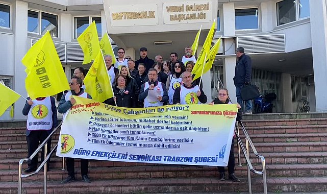 Büro Emekçileri Sendikası (BES) Trabzon Şubesi, Hızırbey Vergi Dairesi önünde vergi adaletsizliği ve taleplerine ilişkin basın açıklaması yaptı. Şube adına konuşan Ayhan Kanber, "Büro Emekçileri Sendikası olarak diyoruz ki; Maliye Bakanlığı bir bütün olarak yeniden yapılandırılmalı; bakanlık, maliye emekçilerini Mali Hizmetler sınıfı olarak ayrı bir iş kolu olarak tanımlamalıdır. Maliye emekçileri artık sorunlarına kalıcı çözümler beklemektedir. Bunun için, yoksulluk sınırındaki her türlü kazanç vergilerden arındırılmalı ve gelir vergisi ücret gelirlerinde yüzde 10ʼa sabitlenmelidir” dedi.