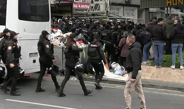 Haber: Hakan KAYA-Kamera: Vedat BAYRAKTAR(İSTANBUL) 1 Mayıs Emek ve Dayanışma Günü'nde Beşiktaş'tan Taksim'e yürümek isteyen yurttaşlara polis müdahale etti. Polis, yurttaşları ablukaya alıp plastik kelepçeyle tek tek gözaltı aracına götürürken, gazetecilerin de görüntü almasını engellemeye çalıştı.1 Mayıs Emek ve Dayanışma Günü'nde güvenlik önlemleri kapsamında Taksim'e çıkan yollar sabah saatlerinde araç ve yaya trafiğine kapatıldı. Saat 10.00 sıralarında Halkın Kurtuluş Partisi'den (HKP) bir grup yurttaş Beşiktaş Barbaros Bulvarı üzerinden Taksim'e çıkmaya çalıştı.Basın mensuplarının görüntü almasını engellemeye çalıştılarBarbaros Bulvarı üzerinde kurduğu barikatı zorlayan gruba polis müdahale etti. Grubu ablukaya alan polisler, basın mensuplarının önüne set çekerek görüntü almasını engellemeye çalıştı. Gruptakilere plastik kelepçe takan polis tek tek gözaltı aracına götürdü.Gözaltı aracı ayrıldıktan kısa bir süre sonra ara sokaktan HKP'li bir grup daha Taksim'e yürümek istedi. Polis ekipleri yine grubun etrafını sardı ve gözaltına alarak alandan götürdü.