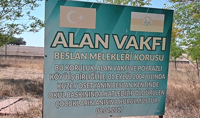 HABER: Seyfi ÇELİKKAYA(YOZGAT) - Rusya'nın Kuzey Osetya-Alanya Cumhuriyeti'ndeki Beslan şehrinde 1 Eylül 2004'teki katliamda hayatını kaybeden 334 kişi için 19. yüzyılda Anadolu'ya göçen Alanların torunlarının yaşadığı Yozgat'ın Boğazlıyan ilçesi Poyrazlı Köyü'ndeki "Beslan Melekleri Anıtı" önünde anma töreni düzenlendi. Törene katılan Rusya Büyükelçiliği temsilcisi İlia Mulin, çelengi köylülerle birlikte anıta koyarak, bu tür trajedilerin bir daha yaşanmaması için ellerinden geleni yapacaklarını söyledi.Beslan'da 21 yıl önce meydana gelen terör saldırısında hayatını kaybeden çoğunluğu çocuk 334 kişinin anısına Poyrazlı Köyü'nde 2017'de yapılan Beslan Melekleri Anıtı önünde anma töreni düzenlendi.Anıt bölgesinde her çocuk için dikilen fidanlarla oluşturulan korulukta gerçekleştirilen etkinlikte, Rusya'nın Ankara Büyükelçiliği Rus Evi Danışmanı İlia Mulin, köy halkı ile birlikte anıta çelenk koydu ve saygı duruşunda bulundu.Poyrazlı Köyü Muhtarı Mustafa Kılıç, yaptığı açıklamada, terörün her türlüsüne karşı olduklarını belirterek, "Beslan'da katledilen çocukları saygıyla anıyoruz. Aynı zamanda Filistin'de yaşananları da kınıyoruz. Toplum ve dünya olarak karşılaştığımız tüm olumsuzlukları reddediyoruz. Terörizmin sağı, solu, hiçbir siyasi sığınağı yok" dedi."Böyle bir felaketin bir daha asla yaşanmamasını için elimizden geleni yapacağımıza söz veriyoruz"Rus Evi Danışmanı İlia Mulin ise şöyle konuştu:"Bugün burada Beslan'da yaşanan terörün kurbanlarını anmak için toplandık. O gün okulda çocukların kahkahaları yerine sela sesleri ve acı çığlıklar duyuldu. Yüzlerce insan, çocuklar, anne, babalar, öğretmenler hayatını kaybetti. Onların hatırasının önünde saygıyla eğliyor, yakınlarını kaybedenlere en derin temennilerimizi sunuyoruz. Bu trajedi bize yaşamın değerini, barış ve huzurun önemini hatırlatıyor. Çiçeklerimizi bırakırken kaybedeceklerimizin hatıralarını yaşatacağımıza ve böyle bir felaketin bir daha asla yaşanmamasını için elimizden geleni yapacağımıza söz veriyoruz.""Yüzlerce çocuğun tam dört gün suya erişemediğini gösteren bir anıt"Poyrazlı Köyü'nden gazeteci yazar Ahmet Zorlu da anıt hakkında şu bilgileri verdi:"Bu anıt, Beslan'daki katliam öncesi okulda rehin alınan yüzlerce çocuğun tam 4 gün suya erişemediğini gösteriyor. İçeride gördüğünüz gibi mermer bir suluk var, oradan su akıyor. Ama bu demir kafes o suya ulaşımı engelliyor. Onu anlatmak istediler, Kafkasya'dan gelip bu anıtı yapan, bisikletlerle gelip bu anıtı yapan 11 gencin amacı buydu. Ve artık gördüğünüz gibi hem Beslan Melekleri Koruluğu hem de bu anıt her 1 Eylül'de ziyarete açılıyor ve Rusya Büyükelçiliğinden de bir temsilci gelip çelenk bırakıyor.""Beslan'daki katliamda hayatını kaybeden her şahıs için birer fidan diktik"Köy sakinlerinden Hüseyin Şahingöz de hayatını kaybedenler için fidan dikip, koruluk oluşturduklarını vurgulayarak, "Beslan'daki katliamda hayatını kaybeden her şahıs için birer fidan diktik. Bu fidanların da oradan gelen isim listesine göre de böyle etiketler yaptırdık. Bu Kosova Medine Aslanbekov'a ait. 1993 doğumluymuş ve bunun adına bu fidanı diktik. Bütün fidanların çoğunda da böyle isimleri var onların. İsimlerini böyle yaşatmaya çalışıyoruz" ifadelerini kullandı.