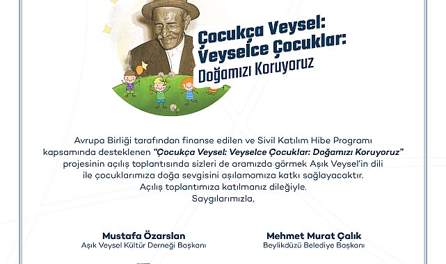 (İSTANBUL)- Beylikdüzü Belediyesi, Aşık Veysel Kültür Derneği’nin Avrupa Birliği (AB) tarafından finanse edilen “Çocukça Veysel: Veyselce Çocuklar: Doğamızı Koruyoruz” projesinin paydaşlarından biri oldu. Kültür-sanat yoluyla çocuklarda doğa ve insan sevgisinin güçlendirilmesini hedefleyen projenin detayları, düzenlenecek tanıtım toplantısında kamuoyu ile paylaşılacak.Beylikdüzü Belediyesi, Aşık Veysel Kültür Derneği’nin, Avrupa Birliği tarafından finanse edilen ve Sivil Katılım Hibe Programı kapsamında desteklenen “Çocukça Veysel: Veyselce Çocuklar: Doğamızı Koruyoruz” projesinin ortaklarından biri oldu. Türkiye Sakatlar Derneği Beylikdüzü Şubesi’nin de ortakları arasında yer aldığı proje, kültür ve sanat yoluyla çocuklarda doğa ve insan sevgisinin güçlendirilmesini hedefliyor. Proje ile kültür ve sanat etkinliklerine katılma fırsatı olmayan, 7-15 yaş arasındaki görme ve işitme engeli çocuklarla engeli olmayan çocukların; kültür ve sanat yoluyla bir arada yaşama, birlikte eğitim alma, üretme, oyun ve arkadaşlık ilişkileri geliştirmeleri sağlanacak.Proje detayları kamuoyu ile paylaşılacakYerel yönetimlerin STK’larla iş birliği içerisinde olmasının önemini bir kez daha ortaya koyan projenin tanıtım toplantısı, 20 Şubat Perşembe günü (yarın) saat 10.00’da Beylikdüzü Atatürk Kültür ve Sanat Merkezi Trakya Salonu’nda gerçekleşecek. Programa, Beylikdüzü Belediye Başkanı Mehmet Murat Çalık, Aşık Veysel Kültür Derneği Başkanı Mustafa Özarslan ve STK temsilcileri katılacak.