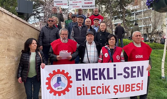 Bilecik’te DİSK’e bağlı Emekli-Sen üyeleri düşük emekli maaşı ve 3 bin liralık bayram ikramiyesine tepki gösterdi. Emekliler adına açıklamalarda bulunan sendika yöneticisi Mehmet Döner, "Emekliler, talep ettikleri, hak ettikleri bayram ikramiyelerine er ya da geç kavuşacak. İnsanın, sadece beslenme ihtiyacını karşılayarak insan onuruna yakışır bir yaşama kavuşamayacağı açıktır. Bizler, emeklilere ısınmayı, ulaşımı, sağlığı, kültürel ve sosyal ihtiyaçları lüks gören bir zihniyete karşı bir aradayız" dedi.