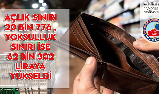 (ANKARA) - Birleşik Kamu-İş Konfederasyonu Ar-Ge birimi KAMU-AR'ın açıkladığı açlık ve yoksulluk sınırı araştırmasına göre, temmuz ayında açlık sınırı bir önceki aya göre 202 lira daha artarak 20 bin 776 liraya, yoksulluk sınırı 62 bin 302 liraya yükseldi.Birleşik Kamu-İş Konfederasyonu, Ar-Ge birimi KAMU-AR'ın dört kişilik bir ailenin, dengeli ve sağlıklı beslenebilmesi için tüketilmesi gereken gıda ile beslenmenin yanı sıra diğer ihtiyaçların yoksunluk hissi çekmeden karşılayabilmesi için yapması gereken harcamaları dikkate alarak hesapladığı açlık-yoksulluk sınırı araştırmasının temmuz ayına ilişkin verilerini yayımladı. Buna göre açlık sınırı temmuzda önceki aya göre 202 lira daha artarak 20 bin 776 liraya yükselirken, yoksulluk sınırı da 885 lira artarak 62 bin 302 lira oldu. Yılın ilk yedi aylık döneminde ise açlık sınırı 4 bin 293 lira, yoksulluk sınırı ise yüzde 15 bin 465 lira arttı.Et - balık - yumurtaya aylık olarak harcanması gereken tutar yıllık olarak 2 bin 449 lira arttıAnkara’da en fazla alışveriş yapılan marketlerden derlenen fiyatlara göre, dengeli beslenebilmek için et- balık- yumurtaya aylık olarak harcanması gereken tutar temmuzda bir önceki aya göre 26 lira arttı, yıllık olarak ise 2 bin 449 lira artarak 5 bin 995 lira oldu. Bir önceki aya göre 28 lira artarak 4 bin 652 liraya yükselen süt, yoğurt ve peynir için yapılması gereken harcamada son bir yılda ise bin 817 liralık artış oldu. Meyve için harcanması gereken para temmuzda önceki aya göre 113 lira azalırken, geçen yılın aynı ayına göre ise 835 lira artarak 1.975 liraya geriledi, sebze için harcaması gereken tutar ise önceki aya göre 47 lira, geçen yılın aynı ayına göre ise 645 lira artarak 2 bin 420 liraya çıktı.Açlık sınırı bu yılın ilk yedi aylık döneminde ise toplam 4 bin 293 lira artış kaydettiEkmek, un ve makarna gibi ürünler için yapılması gereken harcama 124 lira artarak bin 749 liraya yükselirken, pirinç ve bulgur harcamaları 9 lira artarak 835 lira oldu. Yağ için yapılması gereken harcama ise 572 liraya çıktı. Şeker, bal, pekmez, reçel gibi gıda maddelerine yapılması gereken harcama önceki aya göre 67 lira artarak bin 400 lira oldu. Aynı ailenin zeytin için yapması gereken harcama ise değişmedi ve 746 lirada kaldı. Yetişkin erkek için 2 bin 800, kadın için 2 bin 200, genç için 3 bin ve çocuk için de bin 600 kalori esas alınarak yapılan hesaplamaya göre, temmuz ayında açlık sınırı yetişkin erkek için 6 bin 66 lira, yetişkin kadın için 4 bin 762 lira, çocuk için 3 bin 458 lira ve genç için de 6 bin 491 lira oldu. Açlık sınırı bu yılın ilk yedi aylık döneminde ise toplam 4 bin 293 lira artış kaydetti.Gıda dışı harcamalar bu yılın ilk yedi aylık döneminde 11 bin 172 lira artış gösterdiYoksulluk sınırının belirlenmesinde gıda dışı gereksinimlerin fiyat değişimleri de esas alınarak yapılan araştırmaya göre, dört kişilik bir ailenin gıda dışındaki gereksinimlerini “yoksunluk hissi duymadan” karşılayabilmesi için gereken harcama tutarı da temmuzda 41 bin 526 liraya kadar çıktı. Temmuzda dört kişinin giyim ve ayakkabı harcamaları bin 945 liraya gerilerken, barınma (kira dâhil) harcamaları 9 bin 865 liraya, ev eşyası harcamaları 5 bin 287 lira, sağlık harcamaları bin 703 lira oldu. Ulaştırma harcamaları 12 bin 4450 liraya indi. Haberleşme harcamaları bin 317 liraya, eğlence ve kültür harcamaları bin 237 liraya, eğitim harcamaları 918 liraya, tatil-otel harcamaları 4 bin 569 liraya ve çeşitli mal ve hizmetlerle ilgili harcamalar 2 bin 235 liraya çıktı. Gıda dışı harcamalarda bu yılın ilk yedi aylık döneminde 11 bin 172 lira artış gösterdi.