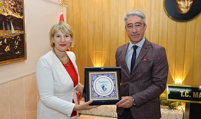 Birleşik Krallık Türkiye Büyükelçisi Jill Morris, Marmaris Belediye Başkanı Mehmet Oktay’ı ziyaret etti.Birleşik Krallık Türkiye Büyükelçisi Jill Morris, Marmaris Belediye Başkanı Mehmet Oktay’ı makamında ziyaret etti. Marmaris, turizm sezonu ve gelecek dönemlerle ilgili değerlendirmelerin yapıldığı görüşmede, Birleşik Krallık Marmaris Fahri Konsolosu Doğan Tugay da yer aldı.Ziyaretinden dolayı Büyükelçi Morris’e teşekkür eden Belediye Başkanı Mehmet Oktay, “Marmaris’te son yıllarda pandemi ve yangınlar dolayısıyla zor zamanlar yaşadık ama Marmaris’imiz her ne olursa olsun Dünya’nın incisi… Sizleri de güzel Marmaris’imizde ağırlamaktan mutluluk duyuyoruz” dedi."İLİŞKİLER HEP İYİ OLACAK"Birleşik Krallık’ın Marmaris’in ana pazarı olduğunu hatırlatan Oktay, “Her yıl Birleşik Krallık’tan yüzbinlerce misafiri ağırlıyoruz. Ayrıca yerleşik olarak yaşayan binlerce Birleşik Krallık vatandaşı ilçe sakinimiz bulunuyor. Birleşik Krallık’la olan ilişkilerimiz her zaman sıcak ve yakın oldu. Bundan sonra da aynı şekilde devam edecektir” dedi.Marmaris’te bu sezon turist sayısının geçtiğimiz birkaç yılın üzerine çıktığını söyleyen Oktay, “Hedefimiz turizmi 12 aya yaymak ayrıca farklı pazarlarda kendimize yer açmak. Bunun için de çalışmalarımız yoğun bir biçimde devam ediyor” diye konuştu..ZİYARETÇİ SAYISI ARTACAKMarmaris’te bulunmaktan mutluluk duyduğunu söyleyen Büyükelçi Jill Morris ise “Birleşik Krallık’tan tüm Muğla’ya çok ilgi var ama özellikle Marmaris’e olan ilgi hepsinden daha fazla. Marmaris doğal güzellikleri, denizi ve misafirperverliği ile her zaman ilgi çekecektir, buna inancım tam” diye konuştu.Türkiye’ye gelen İngiliz turist sayısında bu yıl önceki yıllara göre yüzde 20’lik bir artışın söz konusu olduğunu belirten Büyükelçi Jill Morris, 2024 yılında büyük olasılıkla 4 milyonun üstünde ziyaretçinin Türkiye'ye gelmesini beklediğini söyledi.Ziyaretin sonunda Başkan Oktay, Büyükelçi Morris’e Marmaris’in yöresel ürünlerinden oluşan bir hediye takdim etti.