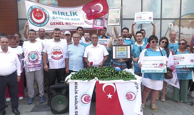 “Sendikaların kırmızı çizgilerini ilan etmeleri gerekmektedir”Sendika adına açıklamayı yapan Birlik Sağlık-Sen Genel Başkanı Ahmet Doğruyol, şunları söyledi:“Memur ve emeklilerinin maaş artışlarının belirlendiği ve her iki yılda bir ağustos ayı içerisinde yapılan toplu sözleşmelerin bu yıl 8'incisi yapılmaktadır. Mevcut hükümet ve yetkili sendikalar arasındaki ilk toplantı 28 Temmuz tarihinde yapılmış ve 16 gün geride kalmıştır. TİS görüşmeleri her ne kadar mevcut hükümet ve siyasetin kontrolündeki sarı sendikalar arasında oynanan bir tiyatrodan ibaret olsa da memur ve emeklilerimizin kimseye muhtaç olmadan geçinebilmeleri için hayati öneme sahiptir. Dolayısıyla, yetkili sendikalar başta olmak üzere masada bulunan sendikaların ve tüm sendikaların gündem oluşturması, kırmızı çizgilerini ilan etmeleri gerekmektedir.”“Memurlar son 15 yılda yaklaşık yüzde 50 fakirleşmişlerdir”Bugüne kadar yapılan sözleşmelerin çalışanların geçim derdine derman olmadığını hatırlatan Doğruyol, “Yedi dönemdir yapılan toplu sözleşmelerde, sözde alınan zamların enflasyonun altında kalması enflasyon oranında verilen zamların içinde kalarak hiç bir manasının olmaması, toplu sözleşmelerden beklentiyi de ortadan kaldırmıştır. Toplu sözleşmeler ‘bilmem, görmem, duymam’ diyerek üç maymunu oynayanlarla, ‘ekmek yiyorsa karnı toktur’ diyenler arasında geçmektedir. Her toplu sözleşme döneminin başında sert çıkışlarla talepte bulunanların, sözleşme sonunda geldikleri nokta, 0.5 puanlık artışlara imza atmalarıyla sonuçlanmaktadır. 14 yıldan bu yana yapılan toplu sözleşmelerde, verilen enflasyon farkı zam değildir. Enflasyon artı yüzde 3-5 zam istiyoruz bile diyemeyenler halen tiyatro oynamaya devam etmektedirler. Reel verilerden uzak, hesaplayanların bile inanmadığı, TÜİK’in enflasyon oranlarıyla memurlar son 15 yılda yaklaşık yüzde 50 fakirleşmişlerdir. Dolayısıyla, bu güne dek yapılmış olan toplu sözleşmelerden, toplu sözleşme masalarından bir cacık olmamıştır” dedi.“Ülkemizde bu güne dek, hangi ekonomik veriler tutmuştur”Açıklanan zam teklifine tepki gösteren Doğruyol, “Öngörülen enflasyona göre zam pazarlığı yapmak nedir? Ülkemizde bugüne dek, hangi ekonomik veriler tutmuştur ki, 2026 yılında öngörülen yüzde 12, 2027 yılında öngörülen yüzde 8’lik enflasyon oranları tutacaktır? 2026 yılı için 10 artı 6, 2027 yılı için 4 artı 4 zam teklif etmek memura hakarettir. Teklif edilen zamlarda zaten enflasyonun altında kalacağı için hiçbir mantığı da manası da yoktur. Emekliler ise yaklaşık 15 bin TL’lik maaşlarıyla perişan durumdadırlar. Toplu sözleşmelere taleplerini klasör klasör götürenler, toplu sözleşme sonunda, ne ek zam ne refah payı ne bayram ikramiyesi ne de defaten söz verilen 3600 ek gösterge problemi gibi hiçbir talebi gerçekleştirmeden ve arkalarına bile bakmadan masadan kalkmaktadırlar” diye konuştu.“Bu ölüm sessizliğiniz niyedir?”Masanın paydaşı olan Memur-Sen’e de çağrıda bulunan Doğruyol, “Eğer bir sendikanın varlık sebebi bir siyasi partiyse, o siyasi parti de iktidardaysa, siz hak arayamazsınız. Alanlara inemezsiniz. Sesinizi yükseltemezsiniz. Sendikacılık, hak aramaktır. Alanlarda olmaktır, eylem yapmaktır. Sendikacılık, rüzgârın yönüne göre yelken açmak değil, doğru bildiğin yöne yelken açmaktır. Sendikacılık istemek, dile getirmek değil, söke söke almaktır. Masada olan yetkili sendikalara soruyoruz? Aradan geçen 15 güne rağmen bu ölüm sessizliğiniz niyedir? Bir yerlerden talimat mı aldınız? Tehdit mi edildiniz? Yoksa diplomalarınız mı sahte” dedi.“Ne yaparsanız yapın o komisyondan hiçbir cacık olmayacak”Doğruyol, son olarak dağıtılacak salatalıklarla ‘cacık’ göndermesi yaparak şu ifadeleri kullandı:“İçinde bulunduğumuz süreçte, 19 Ağustos'ta, ya uzlaşma sağlanacak ya da uzlaşmazlık zaptı imzalanacaktır. Yani, kalan süre 5 gündür. Maalesef yetkili sendikalar, yaklaşık 3,5 milyon memur 2,5 milyon memur emeklisi ve aileleri ile birlikte yaklaşık 25 milyon kişinin temsilini ve sorumluluğunu taşıyamamaktadırlar. TİS’ten bir sonuç alınamazsa Hakem Kurulu’na gidilecek. O kurulda 11 kişiden oluşan bir komisyon bulunuyor. 11 kişinin altı kişisi hükümet tarafından, beş kişi sendikalardan tarafından. Ne yaparsanız yapın o komisyondan hiçbir cacık olmayacak. Bu salatalıklardan bir cacık olabilir ama o TİS masasından hiçbir cacık olmayacak. Bugüne kadar olmadı. Bu yasa değişmeli ve sizler de kafanıza yumruğu yediğinizde yerinize oturmaktan vazgeçmelisiniz. Bu TİS’lerle memurların, emeklilerin hakkına giriyorsunuz. Yüzde 88 zam istediğiniz yerde yüzde 10 zam teklifini gördünüz. Ne yapacaksınız? Alanlarda birkaç basın açıklaması, tweet etkinliği, ardından birkaç yazı... Ondan sonra yine yerinize oturacaksınız. Sizin konuşmaya ve alanlara çıkmaya hakkınız yok. Çünkü siz birilerinin emireri konumundasınız. Sizler, ülkenin kaynaklarını oluk oluk bir yerlere aktarırken memurun üç beş kuruşuna göz dikiyorsunuz. Memuru bu şekilde cezalandıramazsınız.”