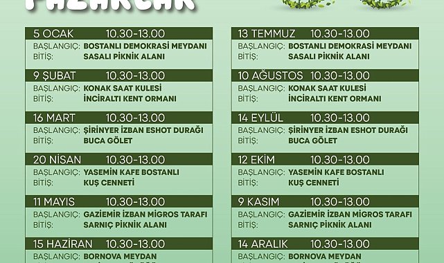 (İZMİR) - İzmir Büyükşehir Belediyesi kentte bisiklet kullanımını artırmak ve yurttaşların keyifli bir pazar geçirmesini sağlamak amacıyla “Bisikletli Pazarlar” etkinliği düzenledi. İzmirliler yeni yıldan itibaren her ayın bir pazar günü buluşarak bisikletle farklı rotalar keşfedecek ve ardından piknik yapacak. İlk Bisikletli Pazar etkinliği 5 Ocak'ta Bostanlı'da yapılacak. İzmir Büyükşehir Belediyesi, İzmir Büyükşehir Belediye Başkanı Cemil Tugay’ın, sporu ve sağlıklı yaşamı kentte yaşayanların gündelik hayatlarının bir parçası haline getirme hedefi doğrultusunda “Bisikletli Pazarlar” etkinliği başlattı. Bisikletliler Kooperatifi (BİSİKOOP) iş birliğiyle 2025 yılı boyunca her ay bir pazar günü düzenlenecek organizasyon, farklı rotalarda gerçekleştirilecek. İzmirliler, başlangıç noktalarında buluşup kentin güzelliklerinin tadını çıkararak bisiklet sürecek; ardından bitiş noktasında hep birlikte piknik yaparak keyifli bir pazar günü etkinliğini tamamlamış olacak. İlk sürüş 5 Ocak 2025 günü saat 10.30’da Bostanlı Demokrasi Meydanı’nda başlayacak ve Sasalı Piknik Alanı’nda sona erecek. Kayıtlar, maratonizmir.org web adresi üzerinden ücretsiz olarak yapılabiliyor.