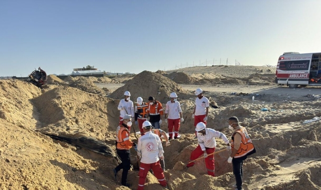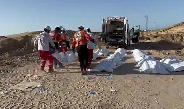 (ANKARA) - Birleşmiş Milletler (BM) en az biri BM çalışanı olmak üzere 15 Filistinli sağlık görevlisinin sekiz gün önce Gazze'nin güneyinde İsrail güçleri tarafından öldürülüp toplu mezara gömüldüğünü açıkladı.Birleşmiş Milletler (BM) en az biri BM çalışanı olmak üzere 15 Filistinli sağlık görevlisinin sekiz gün önce Gazze'nin güneyinde İsrail güçleri tarafından öldürülüp toplu mezara gömüldüğünü açıkladı. Sağlık çalışanları, İsrail'in Mısır sınırına yakın bölgede 23 Mart itibariyle saldırılarını yeniden başlatmasının ardından öldürüldü. BM İnsani Yardım Ofisi (OCHA) ve Filistin Kızılayı (PRCS) ile Sivil Savunma çalışanlarının, vurulan meslektaşlarını kurtarmak ve bölgedeki sivilleri tahliye etmek için göreve çıktıkları, ancak işaretlenmiş ambulans araçlarının Refah kentinin Tel el-Sultan bölgesinde yoğun İsrail ateşine maruz kaldığı ifade edildi. Gazze'deki bir Kızılay yetkilisinin basın kuruluşlarına verdiği bilgiye göre öldürülenlerden en az birinin öldürülmeden önce gözaltına alındığına dair kanıtlar bulunuyor.BM yetkilileri, olayın ardından bölgeye giden kurtarma ekibinin İsrail tarafından öldürülen 15 kişiyi bulduğunu ve çoğu cesedin toplu mezara atıldığını söyledi. Birleşmiş Milletler'in insani yardım sorumlusu Tom Fletcher, X platformunda yaptığı açıklamada "Hayatları kurtarmaya çalışırken İsrail güçleri tarafından öldürüldüler... Hesap verebilirlik ve adalet talep ediyoruz" dedi.Kızılay, Uluslararası Kızılhaç Komitesi ve Birleşmiş Milletler, öldürülenlerin tümünün insani yardım çalışanları olduğunu ve asla saldırıya uğramamaları gerektiğini belirtti. Kızılay, cinayetleri savaş suçu olarak nitelendirip hesap verebilirlik talebinde bulundu.Birleşmiş Milletler'in Gazze'deki insani yardım yetkilisi Jonathan Whittall, kurtarma ekibine katılırken X platformunda, araçların hurda haldeki resimlerini paylaştı. Kuma gömülen raçların üzerindeki Birleşmiş Milletler logosuna ait izler hâlâ görünüyordu."Birer birer vuruldular, vuruldular. Cesetleri toplandı ve bu toplu mezara gömüldü" diyen Whittall ayrıca, "Onları üniformalarıyla, eldivenleriyle çıkarıyoruz... Hayat kurtarmak için buradaydılar. Bunun yerine toplu mezara girdiler" ifadelerini kullandı.İsrailli yetkililer ise öldürülenlerden dokuzunun Filistinli militan olduğunu, İsrail güçlerinin, ambulansı rastgele vurmadığını, ancak birkaç aracın, farları veya acil ışıkları olmadan İsrail askerlerine doğru şüpheli bir şekilde ilerlediğini ve bu yüzden ateş açıldığını savundu.
