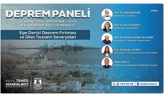 (MUĞLA)- Bodrum Belediyesi, "Ege Denizi Deprem Fırtınası ve Olası Tsunami Senaryoları" konulu deprem paneli düzenleniyor. 20 Şubat Perşembe günü düzenlenecek panelde, deprem fırtınaları ve bunların getireceği tsunami riskleri konuşulacak. Bodrum Belediyesi, "Ege Denizi Deprem Fırtınası ve Olası Tsunami Senaryoları" paneli düzenleniyor. 20 Şubat Perşembe günü saat 13.00’te Herodot Kültür Merkezi'nde düzenlenecek panelde, Yer Bilimci Prof. Dr. Celal Şengör, Volkan Bilimci Prof. Dr. Gonca Kuşcu, Uluslararası Tsunami Uzmanı Prof. Dr. Ahmet Cevdet Yalçıner, Peyzaj Mimarı ve Şehir Plancısı Prof. Dr. Gülşen Aytaç ve TMMOB İnşaat Mühendisleri Odası Bodrum Temsilcisi Metin Soylu, Ege denizindeki deprem fırtınası ve olası tsunami senaryoları ile ilgili değerlendirmelerde bulunacak.Deprem fırtınaları ve bunların getireceği tsunami risklerinin konuşulacağı Deprem Panelinde bölgedeki deprem aktivitelerinin sıklığı, büyüklükleri ve tsunami olasılıkları hakkında bilgilendirmeler yapılacak."Bodrum'un geleceğini güvence altına almak için güçlü bir adım olacak"Belediye Başkanı Tamer Mandalinci, Bodrum Belediyesi olarak kenti olası afetlere karşı dirençli hale getirmek için kamu kurum ve kuruluşları ile sivil toplum örgütleriyle iş birliği içinde çalışmalarına devam ettiklerini belirterek şöyle konuştu:"Son günlerde gerek dünya gerekse ülke gündemini meşgul eden olası Ege depremi ve tsunami riskine yönelik ilçe genelinde çalışmalarımız devam ediyor. Bu kapsamda düzenleyeceğimiz deprem panelinde, alanında uzman ve birbirinden kıymetli bilim insanlarıyla bir araya geleceğiz. Panelimiz, yalnızca akademik bir tartışma ortamı sunmakla kalmayacak, aynı zamanda Bodrum'un geleceğini güvence altına almak için güçlü bir adım olacak. Halka açık olarak gerçekleştireceğimiz panele tüm vatandaşlarımızı bekliyoruz. Hep birlikte, bilim ve dayanışmanın gücüyle daha güçlü bir Bodrum inşa edeceğiz."