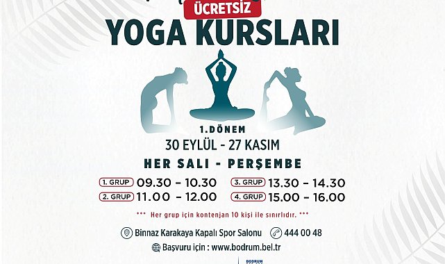 (MUĞLA) - Bodrum Belediyesi'nin kadınlara yönelik ücretsiz yoga kurslarında ilk dönem, 30 Eylül itibarıyla başlıyor. Bodrum Belediyesi Kültür ve Sosyal İşler Müdürlüğü tarafından “Kendinle Buluş, Nefes Al, Güçlen!” sloganıyla hayata geçirilen yoga kurslarının birinci dönemi, 30 Eylül ile 27 Kasım 2025 tarihleri arasında düzenlenecek.Salı ve perşembe günleri gerçekleştirilecek kurslar, alanında uzman eğitmenler eşliğinde dört farklı grup halinde yapılacak. Her biri 10 kişilik gruplardan oluşan, iki aylık periyotlarla düzenlenen ve her dönem yeni katılımcılara açık olan yoga kursları, ücretsiz olarak verilecek ve kontenjanla sınırlı olacak.Kurslara katılmak isteyenler, Bodrum Belediyesi Çağrı Merkezi’nin 444 00 48 numaralı hattını arayarak ya da 'www.bodrum.bel.tr' adresini ziyaret ederek detaylı bilgiye ulaşabilecek.Kurslara çevrim içi başvuru yapmak isteyenler de 'https://docs.google.com/forms/d/1bYSglAJO_NF6UwWgSJwl5S_sgoPrnMeTUEJ6wnpjCQ8/edit?ts=68809ae1&pli=1' bağlantısına erişebilecek. Ders saatleri ise şöyle olacak: 1. Grup: 09.30 – 10.302. Grup: 11.00 – 12.003. Grup: 13.30 – 14.304. Grup: 15.00 – 16.00