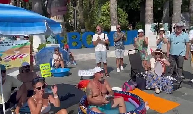 Bodrum’da kıyı işgallerine karşı yedi haftadır düzenlenen “Kıyılar Halkındır Halkın Kalacak” eylemleri için sahillerde yürüyecek yer bulamayan vatandaşlar, belediye meydanını plaja çevirdi. Meydanda havlularını yere serip, şemsiyelerini açan yurttaşlar, ellerinde “Kıyılar Kimsenin Malı Değildir”, “Elini Çek, Kıyı Herkesin Hakkıdır” yazılı dövizler taşıdı. Bazı vatandaşlar ise şişme havuz ve leğenle eyleme destek verdi.