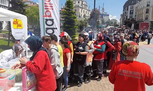 Bolu’da bir tavuk firması tarafından ücretsiz köfte ekmek dağıtıldı. Tavuk eti kullanılarak yapılan köfte ekmekten almak isteyen yüzlerce vatandaş, uzun kuyruk oluşturdu.Bolu’da, beyaz et sektörünün tanınmış isimlerinden olan bir firma tarafından Demokrasi Meydanı’nda stant kurularak vatandaşlara ücretsiz köfte ekmek dağıtıldı. Tavuk eti kullanılarak yapılan köfteler stant önündeki ızgaralarda pişirilerek ekmek arasına konuldu. Ücretsiz köfte ekmekten yararlanmak isteyen yüzlerce vatandaş 25 derece sıcağa aldırış etmeden metrelerce kuyruk oluşturdu.Yapılan ücretsiz dağıtıma özellikle yaşlılar ve öğrenciler büyük ilgi gösterdi.Reklam