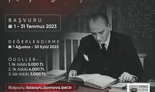 Bornova Belediyesi’nin Türkiye Cumhuriyeti'nin kuruluşunun 100. yılı anısına hazırladığı ödüllü kompozisyon yarışmasının başvuruları başladı. “Atatürk’e Ses, Cumhuriyet'e Nefes” başlıklı yarışmaya 31 Temmuz 2023 tarihine kadar başvuru yapılabilecek.Cumhuriyetin kazanımlarını, Atatürk ilke ve devrimlerinin ışığını ölümsüzleştirip yeni yüzyıllara taşımak amacıyla Bornova Belediyesi tarafından düzenlenen kompozisyon yarışmasına başvurular başladı. Yarışma, 16 yaş ve üzeri tüm vatandaşlara açık olacak.Şartlara uyan eserler seçici kurul tarafından 30 Eylül 2023 tarihine kadar tek tek değerlendirilecek. Tüm yarışmacılara katılım belgesi verilirken ilk üçe girenler ise para ödülü kazanacak. Dereceye giren eser sahiplerinden birinci 5 bin, ikinci 4 bin ve üçüncü olana da 3 bin TL verilecek.Yarışmaya katılmak isteyenler, 0 232 999 29 29 numaralı belediye hattından dahili 4963-4974’ü arayarak bilgi alabilecek.