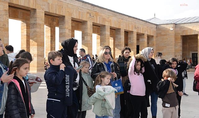 Aslanlı yoldan Anıtkabir’e giren çocuklar, Cumhuriyet'in kurucusu Atatürk’ün mozolesinin bulunduğu alanda duygu dolu anlar yaşadılar.