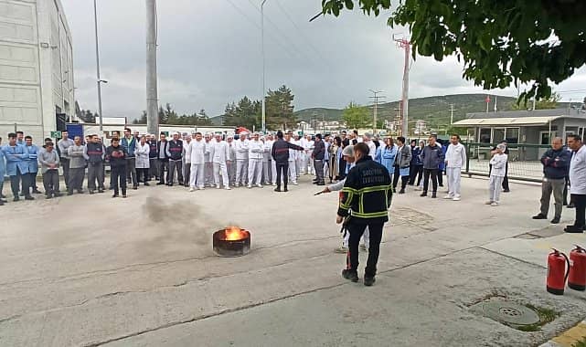 Bozüyük Belediyesi İtfaiye Müdürlüğü ekipleri tarafından ETİ Fabrikası’nda çalışan personele yangın eğitimi verildi.Bozüyük Belediyesi İtfaiye Müdürlüğü’nün deneyimli personeli tarafından ETİ Fabrikası’nın bahçesinde personele verilen yangın eğitiminde, yanma ve yangın, yangın çeşitleri, yangının nedenleri ve alınacak önlemler, yangına müdahale organizasyonu ve yangın güvenlik konuları, yangında kullanılan söndürme cihaz ve ekipmanının kullanılması, gaz ve duman dolu ortamlarda hareket tarzı, tehlikeli kimyasallar ile uygulamada dikkat edilmesi gerekenler hakkında bilgilendirme yapıldı. Yangınlara müdahalede yapılan hatalı davranışlar ve su hortumu kullanımı ile yangın söndürme tüpünün de anlatıldığı eğitim çalışmasında yangın söndürme tatbikatı da yapıldı.