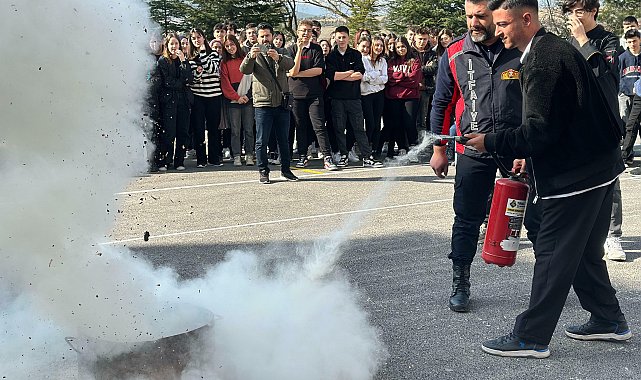Bozüyük Belediyesi İtfaiye Müdürlüğü’nde görevli personel tarafından Selahattin Şeker Mesleki ve Teknik Anadolu Lisesi ile Zehra Ulusay Mesleki ve Teknik Anadolu Lisesi öğrencilerine uygulamalı yangın eğitimi verildi.Bozüyük Belediyesi tarafından Selahattin Şeker Mesleki ve Teknik Anadolu Lisesi ile Zehra Ulusay Mesleki ve Teknik Anadolu Lisesi öğrencilerine yangın eğitimi verildi. Okulların bahçelerinde yapılan yangın eğitimine okul öğrencileri ile öğretmenler katıldı.Eğitimde öğrencilere yangına karşı alınacak önlemler, yangın çeşitleri ve olası bir yangın durumunda neler yapılması gerektiği gibi bilgilerin yanı sıra yangın tüpü ve nasıl kullanılması gerektiği anlatılarak, kullanımı uygulamalı olarak gösterildi. Öğrencilere, deprem anında hayat kurtaran ‘Çök-Kapan-Tutun’ hareketi ile tahliye bilgileri verildi.Yangın eğitiminin sonunda öğrenciler de yangın tüpünü kendileri kullanarak yangın söndürme uygulaması yaptı.