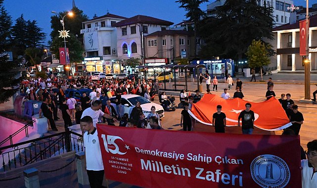 (BİLECİK) - Bozüyük’te 15 Temmuz Demokrasi ve Milli Birlik Günü’nde anma programı ve çeşitli etkinlikler düzenlendi.Bozüyük'te 15 Temmuz Demokrasi ve Milli Birlik Günü etkinlikleri, İntikamtepe Şehitliği'nin ziyaret edilmesi ile başladı. Şehitlik ziyaretinde şehitler için saygı duruşunda bulunularak; saygı atışı yapıldı, İstiklal Marşı okundu. Protokol üyeleri tarafından Şehit mezarlarına karanfil bırakıldı. İlçe Kaymakamı Adem Öztürk’ün şehitlik anı defterini imzalamasının ardından ise dua edildi.Anma törenleri akşam saatlerinde 15 Temmuz Parkı’nda düzenlenen “15 Temmuz” konulu Resim ve El İşi Sergisi’nin açılışı ile devam etti. Daha sonra park alanından Cumhuriyet Meydanı’na kadar protokol üyelerinin de katılımıyla “Şehitlerimize Saygı Yürüyüşü” yapıldı. Cumhuriyet Meydanı’nda devam eden anma programı şehitler için saygı duruşunda bulunulması ve İstiklal Marşı’nın okunması ile başladı. Günün anlam ve önemini belirten konuşma İlçe Kaymakamı Adem Öztürk tarafından yapıldı. Kaymakam Öztürk’ün konuşmasının ardından günün önemine ilişkin bir şiir okunarak Cumhurbaşkanlığı tarafından hazırlanan “15 Temmuz” belgeseli izlendi. Programın devamında Mehteran Takımı gösterileri, Halk Oyunları ekiplerinin Efe Oyunu, Kılıç Kalkan gösterisi ve Seymen gösterisi, Semazen Gösterisi, şiir sunumları ve müzik topluluğunun gösterisi yer alırken, Cumhurbaşkanı Recep Tayyip Erdoğan’ın konuşması izlendi. Saat 00.13’te ise tüm camilerde sela okundu. Programda Bozüyük Belediyesi tarafından vatandaşlara Türk Bayrağı dağıtılarak çay ve çorba gibi çeşitli ikramlarda bulunuldu.