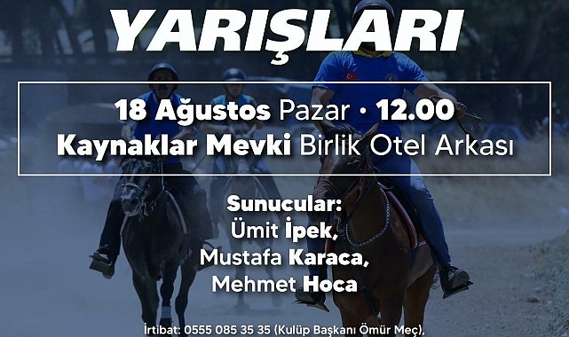 (İZMİR) - Buca’da 3. Geleneksel Rahvan At Yarışları 18 Ağustos Pazar günü düzenlenecek. Tüm İzmirlileri davet eden Buca Belediye Başkanı Görkem Duman, “Atalarımızdan bize miras kalan Rahvan At Yarışları’nı şölen havasında gerçekleştireceğiz” dedi.Buca Belediyesi ve Buca Rahvan Atlı Spor Kulübü iş birliğiyle 18 Ağustos Pazar günü saat 12.00’de Kaynaklar Sebze ve Meyve Hali yanında 3. Geleneksel Buca Rahvan At Yarışları düzenlenecek. Organizasyonda atlar, ikili tay, üçlü tay, dörtlü tay, taze beşli, deste, küçük orta, büyük orta, baş altı, baş atlar ve ithal A grubu olmak üzere toplam 10 kategoride yarışacak. Yarışlara tüm hemşehrilerini davet eden Buca Belediye Başkanı Görkem Duman, “Atalarımızdan bize miras kalan Rahvan At Yarışları’nı şölen havasında gerçekleştireceğiz. Bu keyifli günde sizlerle hep birlikte olmayı diliyoruz” diye konuştu.