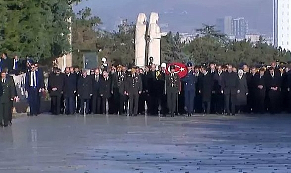 (ANKARA) - Cumhurbaşkanı Recep Tayyip Erdoğan başkanlığındaki devlet erkanı, Türkiye Cumhuriyeti’nin kurucusu, Büyük Önder Mustafa Kemal Atatürk'ün ölümünün 86'ncı yılı dolayısıyla Anıtkabir'i ziyaret etti.Büyük Önder Mustafa Kemal Atatürk, vefatının 86. yılında Anıtkabir'de düzenlenen resmi törenle anıldı. Tören, saat 08.45'te; devlet erkanının Aslanlı Yol'dan yürüyüşüyle başladı.Aslanlı Yol'daki korteje; Cumhurbaşkanı Recep Tayyip Erdoğan, TBMM Başkanı Numan Kurtulmuş, Cumhurbaşkanı Yardımcısı Cevdet Yılmaz, Cumhurbaşkanlığı Kabinesi üyeleri, CHP Genel Başkanı Özgür Özel, MHP Genel Başkanı Devlet Bahçeli, İYİ Parti Genel Başkanı Müsavat Dervişoğlu, yüksek yargı organlarının başkanları, TSK komuta kademesi, Ankara Büyükşehir Belediye Başkanı Mansur Yavaş ve üst düzey bürokratlar katıldı.Yürüyüşün ardından Erdoğan, kırmızı ve beyaz karanfillerden oluşan ay yıldızlı çelengi, mozoleye bıraktı. Atatürk'ün 86 yıl önce vefat ettiği saat olan 09.05'te saygı duruşunda bulunuldu ve ardından İstiklal Marşı okundu.