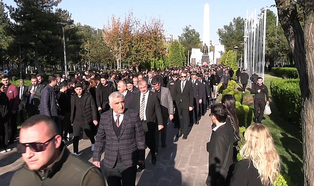 Haber: İsmet MİKAİLOĞULLARI(DİYARBAKIR) - Diyarbakır'da Türkiye Cumhuriyeti’nin kurucusu Gazi Mustafa Kemal Atatürk’ün sonsuzluğa uğurlanışının 86’ncı yılında anma töreni düzenlendi.Diyarbakır Valiliği’nce, Türkiye Cumhuriyeti’nin kurucusu Gazi Mustafa Kemal Atatürk’ün sonsuzluğa uğurlanışının 86’ncı yılında anma programı düzenlendi. Saat 09.05’te sirenlerin çalmasıyla birlikte tüm Türkiye’de olduğu gibi Diyarbakır’da da Atatürk için saygı duruşunda bulunularak, bayraklar yarıya indi.Anıt Park’ta düzenlenen çelenk sunma törenine, Diyarbakır Valisi Murat Zorluoğlu, 7. Kolordu ve Garnizon Komutanı Korgeneral Gültekin Yaralı, Diyarbakır Büyükşehir Belediye Başkan Vekili Berfin Orak Kaya, Cumhuriyet Başsavcısı Mustafa Çelenk, kamu kurum kuruluşu yöneticileri ve çeşitli sivil toplum kuruluşu temsilcileri katıldı.Anma programı, Milli Eğitim Müdürlüğü’nce hazırlanan ''Atatürk’ün Hayatı'' konulu sunumuyla Cahit Sıtkı Tarancı Kültür Sanat Merkezi’nde devam etti. Öğrenciler tarafından şiirlerin okumasının ardından ''Atatürk’ün Asker Kişiliği'' ve ''Atatürk ve 10 Kasım'' konulu konuşmalar yapıldı.