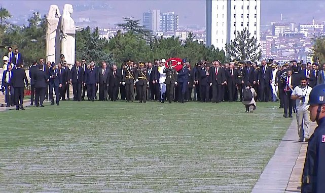 (ANKARA) - Cumhurbaşkanı Recep Tayyip Erdoğan ve devlet erkanı 30 Ağustos Zafer Bayramı dolayısıyla Anıtkabir'i ziyaret etti. Erdoğan, "Her türlü imkansızlığa rağmen kazandığımız bu zaferle şanlı tarihimizin zaferler silsilesine yeni bir halka daha eklemenin yanı sıra Cumhuriyet’in ilanına giden yolu da ardına kadar açtık. Büyük bir inancın, sarsılmaz bir imanın ve zorlu mücadelelerin esiri olan Türkiye Cumhuriyeti’ni muasır medeniyetler seviyesinin üstüne çıkarma hedefimize adım adım yürüyoruz" ifadelerini kullandı.Büyük Zafer'in 102'nci yılı Türkiye'de, KKTC'de ve dış temsilciliklerde törenlerle kutlanıyor. 30 Ağustos Zafer Bayramı dolayısıyla bugün Anıtkabir'de resmi tören düzenlendi. Tören devlet erkanının Aslanlı Yol’dan yürüyüşü ile başladı. Törene; Cumhurbaşkanı Recep Tayyip Erdoğan, TBMM Başkanı Numan Kurtulmuş, Cumhurbaşkanı Yardımcısı Cevdet Yılmaz, yüksek yargı organlarının temsilcileri, MHP Genel Başkanı Devlet Bahçeli, İYİ Parti Genel Başkanı Müsavat Dervişoğlu, CHP Genel Başkan Yardımcısı Gökhan Günaydın başkanlığındaki CHP heyeti, Ankara Büyükşehir Belediye Başkanı Mansur Yavaş, Ankara Valisi Vasip Şahin, TSK komuta kademesi, siyasi partilerin yöneticileri ve temsilcileri ile bürokratlar katıldı.Cumhurbaşkanı Erdoğan, Gazi Mustafa Kemal Atatürk’ün mozolesine ay yıldız motifli çelengi bıraktı, saygı duruşunun ardından İstiklal Marşı okundu. Heyet daha sonra Misak-ı Milli Kulesi’ne geçti. Erdoğan, burada Anıtkabir Özel Defteri’ni imzaladı. Erdoğan, deftere şunları yazdı:"Aziz Atatürk, bugün ezeli ve ebedi vatanımız olan Anadolu’daki varlığımızı perçinleyen, millet olarak bağımsızlığımızı sağlayan Büyük Zafer’in 102’nci yıl dönümünü heyecanla ve iftiharla kutluyoruz. Her türlü imkansızlığa rağmen kazandığımız bu zaferle şanlı tarihimizin zaferler silsilesine yeni bir halka daha eklemenin yanı sıra Cumhuriyet’in ilanına giden yolu da ardına kadar açtık. Büyük bir inancın, sarsılmaz bir imanın ve zorlu mücadelelerin esiri olan Türkiye Cumhuriyeti’ni muasır medeniyetler seviyesinin üstüne çıkarma hedefimize adım adım yürüyoruz. Milletimizin Kızılelması’na dönüşen Türkiye Yüzyılı vizyonumuzu hayata geçirinceye kadar azim ve kararlılıkla mücadelemizi sürdüreceğiz. Bu gurur günümüzde zatıalinizi, silah arkadaşlarınızı ve gül bahçesine girercesine toprağa düşen aziz şehitlerimizi tekrar rahmetle yad ediyorum. Ruhun şad olsun."