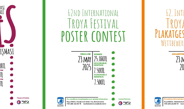 (ÇANAKKALE) - Çanakkale’de 9-13 Ağustos 2025 tarihleri arasında düzenlenecek 62. Uluslararası Troya Festivali'nin duyurularında kullanılacak afişi belirleyecek Afiş Tasarım ve Uygulama Yarışması için başvurular başladı.Çanakkale Belediyesi, Çanakkale Onsekiz Mart Üniversitesi Güzel Sanatlar Fakültesi Grafik Tasarımı Bölümü ve Çanakkale Tübingen Troia Vakfı iş birliği ile düzenlenecek 62. Uluslararası Troya Festivali'nin duyurularında kullanılacak afişi belirlemek için yarışma düzenleniyor. Dijital başvuru yöntemiyle gerçekleşecek ve ulusal/uluslararası alanda 18 yaşını doldurmuş tüm katılımcılara açık olan yarışmaya son başvuru tarihi, 23 Mayıs 2025 olarak belirlendi.Başvurular; yarışmaya yurt içinden afiş gönderecek katılımcılar için aşağıda bulunan başvuru adresi üzerinden, yurt dışından afiş gönderecek katılımcılar için ise ‘[email protected]’ adresine “Yarışma Katılım Formu” ve eserin gönderilmesiyle gerçekleştirilecek.Yarışmada birinci seçilen tasarım 25 bin TL, mansiyon için seçilen iki tasarım ise 7 bin 500 TL para ödülü alacak. Sergilenmeye değer görülen afişler, 62. Uluslararası Troya Festivali kapsamında 9 ile 13 Ağustos 2025 tarihleri arasında beğeniye sunulacak. Yarışmanın ödül töreni ise 10 Ağustos 2025 tarihinde festival resmi açılış töreninde gerçekleşecek.Yarışmaya ilişkin ayrıntılı bilgi için 444 17 17 numaralı Çağrı Merkezi üzerinden Kültür İşleri Müdürlüğü ile iletişime geçilebilecek veya 'https://www.canakkale.bel.tr/tr/sayfa/1140-tum-haberler/9378-62-uluslararasi-troya-festivali-afis-tasarim-ve-uygulama-yarismasi-icin-basvurular-basladi' bağlantısına erişebilecek.