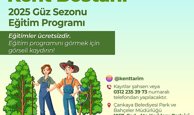 (ANKARA) - Çankaya Belediyesi’nin bu yıl 15'inci dönemine giren “Kent Bostanı” güz dönemi eğitimleri, 17-18 Eylül'de başlıyor. Çankaya Belediyesi Park ve Bahçeler Müdürlüğü'nün, kent halkını toprakla buluşturduğu güz dönemi tarım eğitimlerine başvurular başladı. Temel sebze ve meyve yetiştiriciliği ile tarım alanında genel bilgilerin verildiği eğitimler, Mutlukent Kent Bostan’ında 17 Eylül, Ata Kent Bostan’ında 18 Eylül'de başlayacak.Yerel tohumun öneminden budamaya, aşılamadan sebze ve meyve yetiştiriciliğine kadar pek çok eğitimin yer aldığı kurslar için 0312 235 3973 numaralı telefondan veya Mutlukent ve Ata mahallelerinde yer alan kent bostanlarından başvuru yapılabilecek. Eğitimlerin ilk dönemi 4 Aralık'ta sona erecek.Ata ve Mutlukent'te yer alan kent bostanlarında uygulamalı olarak verilen eğitimlerin takvimi ise şöyle:Mutlukent Kent BostanıTüm dersler saat 12.30 – 14.30 arasında yapılacak.17 Eylül (Çarşamba) – Yerel Tohumun Önemi, Tohumdan Fideye Yolculuk24 Eylül (Çarşamba) – Güzlük Sebze Hazırlığı, Ispanak Yetiştiriciliği1 Ekim (Çarşamba) – Soğan Yetiştiriciliği8 Ekim (Çarşamba) – Turp ve Brokoli Yetiştiriciliği15 Ekim (Çarşamba) – Pırasa ve Havuç Yetiştiriciliği22 Ekim (Çarşamba) – Teraryum Örnekleri ve Uygulama5 Kasım (Çarşamba) – Evde Kompost Yapımı12 Kasım (Çarşamba) – Asma Budaması19 Kasım (Çarşamba) – Meyve Ağaçlarında Budama26 Kasım (Çarşamba) – Gül ve Çalı Grubu Budaması3 Aralık (Çarşamba) – AşılamaAta Kent BostanıTüm dersler saat 13.00 – 15.00 arasında yapılacak.18 Eylül (Perşembe) – Yerel Tohumun Önemi, Tohumdan Fideye Yolculuk25 Eylül (Perşembe) – Su İle Dost Bostanlar, Güzlük Sebze Hazırlığı2 Ekim (Perşembe) – Meyve Ağaçlarında Budama9 Ekim (Perşembe) – Gül ve Çalı Grubu Budaması16 Ekim (Perşembe) – Asma Budaması23 Ekim (Perşembe) – Aşılama6 Kasım (Perşembe) – Soğan ve Ispanak Yetiştiriciliği13 Kasım (Perşembe) – Turp ve Brokoli Yetiştiriciliği20 Kasım (Perşembe) – Pırasa ve Havuç Yetiştiriciliği27 Kasım (Perşembe) – Evde Kompost Yapımı4 Aralık (Perşembe) – Teraryum Örnekleri ve Uygulama