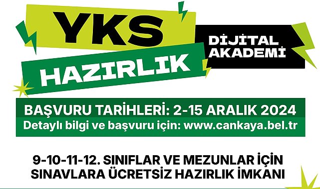 Çankaya Belediyesi, eğitimde fırsat eşitliğini sağlamak amacıyla ücretsiz olarak hayata geçirdiği Çankaya Akademi (Çankaya Belediyesi Destek Eğitim Merkezi) projesini dijital platforma da uyarladı. Teknolojik gelişmelerine uyumlu hale getirilerek oluşturulan "Çankaya Belediyesi YKS Hazırlık Dijital Eğitim Platformu" daha fazla sayıda öğrenciye eğitim imkânı sağlayacak. Hedef 5 bin üniversite adayıKısa sürede yoğun ilgi gören ve "Çankaya Akademi" ile sekiz Çankaya Evi'nde devam eden yüz yüze eğitim programı, YKS Hazırlık Dijital Eğitim Platformu ile online hale getirilerek 2024-2025 Eğitim-Öğretim döneminde 9, 10, 11, 12. sınıf öğrencileri ve liseden mezun olup üniversite sınavına hazırlanan gençlere uzaktan eğitim verilecek. Millî Eğitim Bakanlığı ders ve sınav müfredatına uygun şekilde hazırlanan ve öğrencilerin eğitimlere daha hızlı bir şekilde erişebilmesine olanak sağlayan online programı ile 5 bin aktif kullanıcıya ulaşılması hedefleniyor.Online başvular 15 Aralık gününe kadar Dijital Akademi’ye kayıt başvuruları 2 Aralık 2024 Pazartesi günü başlayacak. Dijital eğitimden yararlanmak isteyenler, https://basvuru.cankaya.bel.tr/akademi/ adresinden başvuruda bulunabilecek. Dijital Akademi’ye başvurularda, öğrencinin Türkiye Cumhuriyeti vatandaşı olması, Çankaya’da ikamet etmesi, 9-10-11-12. sınıf veya 25 yaşını geçmemiş olması şartı aranıyor.