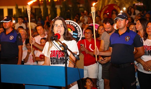 (İZMİR) - Çeşme’de 30 Ağustos Zafer Bayramı, fener alayı ve Cumhuriyet Meydanı’ndaki etkinliklerle büyük bir coşkuyla kutlandı. Belediye Başkanı Lâl Denizli, "Ben de Çeşme’nin ilk kadın belediye başkanı olarak bugün karşınızda durabiliyorsam, bu Zafer Bayramı’nda bizlerin bugünleri için bedel ödeyen başta Gazi Mustafa Kemal Atatürk ve silah arkadaşları sayesindedir" dedi.Çeşme’de 30 Ağustos Zafer Bayramı, binlerce vatandaşın katılımıyla düzenlenen fener alayı ve Cumhuriyet Meydanı’ndaki etkinliklerle büyük bir coşkuyla kutlandı. Uğur Mumcu Parkı’nda bir araya gelen Çeşmeliler, ellerinde meşaleler ve bayraklarla marşlar eşliğinde Cumhuriyet Meydanı’na yürüdü. Meydanı dolduran kalabalık, zafer dolayısıyla milli birlik ve beraberlik ruhunu hep birlikte yaşadı.Cumhuriyet Meydanı’nda düzenlenen törende konuşan Denizli, şunları söyledi:"Dün de bugün de mücadeleye hiç vazgeçmeden devam edeceğiz""Bu vatan kadınlarımıza, gençlerimize özgürce yaşayacakları yarınlar sunan bir devrimin eseridir. Kadın, erkek, genç, yaşlı demeden herkesin eşit haklara sahip olduğu bir yaşamın teminatıdır ülkemiz. Ben de Çeşme’nin ilk kadın belediye başkanı olarak bugün karşınızda durabiliyorsam, bu Zafer Bayramı’nda bizlerin bugünleri için bedel ödeyen başta Gazi Mustafa Kemal Atatürk ve silah arkadaşları sayesindedir. Ve aslında özgürlük mücadelemizin hiç bitmediği günlerde, dün de bugün de mücadeleye hiç vazgeçmeden devam edeceğiz. Var olsun, sağ olsun bu ülke uğrunda canını feda edenler. 30 Ağustos Zafer Bayramı'mız kutlu olsun."Denizli’nin konuşmasının ardından sahne alan halk oyunları ekibinin sergilediği Zeybek gösterisi, vatandaşlardan büyük alkış aldı.