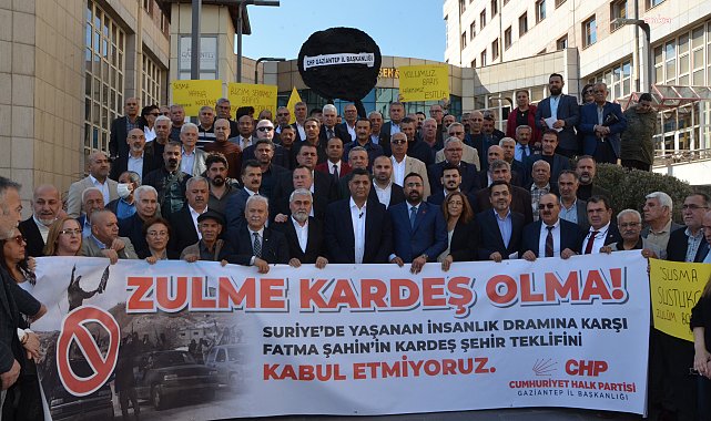 Haber: Jiyan ERKILIÇ (GAZİANTEP) -CHP Gaziantep İl Başkanlığı, Gaziantep Büyükşehir Belediyesi’nin Halep ve Şam ile "kardeş şehir" protokolü imzalaması kararını protesto etti. CHP’li yöneticiler ve partililer, belediye binası önünde toplanarak basın açıklaması yaptı ve belediye önüne siyah çelenk bıraktı.Gaziantep Büyükşehir Belediyesi’nin mart ayı meclis toplantısında, Büyükşehir Belediye Başkanı Fatma Şahin’e, Halep ve Şam ile kardeş şehir protokolü imzalaması için yetki verilmiş, CHP’li meclis üyelerinin itirazına rağmen teklif, oy çokluğuyla kabul edilmişti.CHP Gaziantep İl Başkanı Reis Reisoğlu, Şehitkamil İlçe Başkanı H. Hurşit Yıldırım, Şahinbey İlçe Başkanı Zeki Gürsel, yönetim kurulu üyeleri, meclis üyeleri ve partililerin katılımıyla gerçekleştirilen eylemde, kararın geri çekilmesi çağrısı yapıldı.Gaziantep Büyükşehir Belediyesi önünde açıklama yapan CHP Gaziantep İl Başkanı Reis Reisoğlu, Fatma Şahin ve belediye yönetimini eleştirerek, “Bugün burada insanlığın onurunu, vicdanını ve adaleti savunmak için toplandık. Çünkü yanı başımızda, Suriye'de emperyalist güçlerin kuklası olan zalim yönetim tarafından masum insanlar katledilirken, kadınlar, çocuklar ve siviller hunharca öldürülürken, AKP’li Gaziantep Büyükşehir Belediye Başkanı Fatma Şahin bu zulme karşı çıkmak yerine Halep ve Şam kentleri ile ‘kardeş şehir’ protokolü imzalıyor” diye konuştu.Reisoğlu, bu kararın etik ve insani açıdan kabul edilemez olduğunu vurgulayarak, “Şimdi buradan Gaziantep Büyükşehir Belediyesi önünden Fatma Şahin’e soruyoruz; katliamın sorumluları ile ‘kardeş şehir’ olmak Gazi şehrimize yakışıyor mu? Katliamların yaşandığı bir bölgeyle kardeş şehir protokolü imzalamak ne anlama geliyor? Sivil insanları vahşice öldürmek hangi dinde, hangi ahlakta yer alır? Sizde hiç Allah korkusu yok mu? Nasıl bir vicdan taşıyorsunuz? Sivil insanları öldürmek, soykırım yapmak, bir insanlık suçudur. Bu suçlar dünyanın gözü önünde işlenirken, zulme karşı sessiz kalmak da bu suça ortak olmak değil midir?” dedi.CHP olarak alınan bu karara karşı olduklarını belirten Reisoğlu, “Fatma Şahin ve AKP zihniyeti, aldıkları bu kararla ve katliama sessiz kalarak hangi safta yer aldıklarını açıkça göstermiş oldular. Ama unutulmasın ki, tarih zulme göz yumanları asla affetmez. Biz adaleti savunmaya ve mazlumların yanında olmaya devam edeceğiz. Fatma Şahin ve AKP’li Gaziantep Büyükşehir Belediyesi yönetimini aldıkları bu karardan dolayı kınıyor ve bu siyah çelengi katledilen insanlar anısına buraya bırakıyoruz. Bir an önce aldıkları bu vicdansız ve akıl dışı karardan dönmeye, katliama ses yükseltmeye davet ediyoruz. Söz veriyoruz, CHP iktidarında bu katliamı yapanlardan da, seyirci kalanlardan da hukuk önünde hep birlikte hesap soracağız” diye konuştu.Basın açıklamasının ardından CHP heyeti, Gaziantep Büyükşehir Belediyesi önüne siyah çelenk bıraktı.