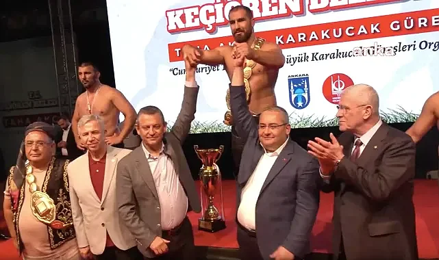 (ANKARA) - CHP Genel Başkanı Özgür Özel, Bağlum Stadyumu’nda düzenlenen Keçiören Belediyesi Taha Akgül Karakucak Güreşleri programına katıldı. CHP lideri Özel, Başpehlivan Feyzullah Aktürk ve dereceye giren güreşçilere ödüllerini takdim etti.CHP Genel Başkanı Özgür Özel ve İYİ Parti Genel Başkanı Müsavat Dervişoğlu, Ankara Büyükşehir Belediye Başkanı Mansur Yavaş ve Keçiören Belediye Başkanı Mesut Özarslan Türkiye Geleneksel Güreşler Federasyonu ile Keçiören Belediyesi Bağlumspor Kulübü'nce düzenlenen 1. Taha Akgül Karakucak Güreşleri'ni izledi.Ayağının kırık olması nedeniyle yürümekte zorluk çeken CHP Genel Başkanı Özel, güreş müsabakalarında dereceye girenlere madalya takmak için çağrıldığı sahneye golf aracıyla geldi. Özgür Özel ve İYİ Parti Genel Başkanı Müsavat Dervişoğlu başarılı sporculara madalya taktı.Taha Akgül Karakucak Güreşleri'nde birinci olan Başpehlivan Feyzullah Aktürk'e araba hediye edildi.