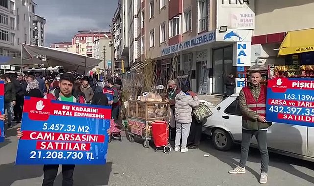 "163 bin 139 metrekare arsa ve tarlamız 432 milyon 397 bin 358 TL satıldı. 270 adet sahte kaşe ile rant sağlandı. 5 bin 457,32 metrekare cami arsasını sattılar 21 milyon 208 bin 730 TL. Borç: 394 milyon 494 bin 598 TL; satılan topraklarımız 432 milyon 397 bin 358 TL; zarar: 826 milyon 891 bin 956 TL."