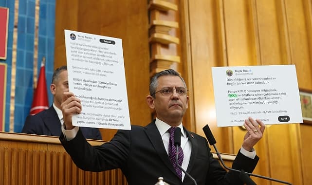 CHP Genel Başkanı Özgür Özel, Grup Toplantısında; kendisinin şehitlerle ilgili mesajını ve Cumhurbaşkanı Recep Tayyip Erdoğan’ın sosyal medya hesabında yaptığı paylaşımı gösterdi ve “Tüm vatandaşlarımızın dikkatine: Askerlerimiz şehit olduğunda, CHP’nin Genel Başkanının tweeti: ‘Pençe Kilit Operasyon bölgesinde, PKK’lı teröristlerle çıkan çatışmada şehit olan altı askerimize Allah’tan rahmet, ailelerine ve milletimize başsağlığı diliyorum.’ Sayın Bahçeli, bugün dedin ya; ‘PKK’nın adını anmaz onlar, hain onlar.’ PKK’nın adını anmayan bir hain arıyorsan, işte Recep Tayyip Erdoğan’ın tweeti. Öyle bedava siyaset yok artık. Hain arıyorsan burada” dedi.