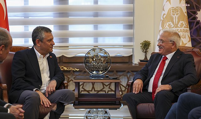 (AKSARAY) - CHP Genel Başkanı Özgür Özel, Aksaray'da düzenlenen miting öncesi Aksaray Valisi Mehmet Ali Kumbuzoğlu'nu ziyaret etti.Özgür Özel, partisinin "Millet İradesine Sahip Çıkıyor" mitingi kapsamında geldiği Aksaray'da Vali Mehmet Ali Kumbuzoğlu'nu makamında ziyaret etti. Valilik binasında gerçekleşen görüşme, basına kapalı olarak yapıldı. Özel'e ziyarette CHP Aksaray İl Başkanı ve bazı milletvekilleri de eşlik etti.