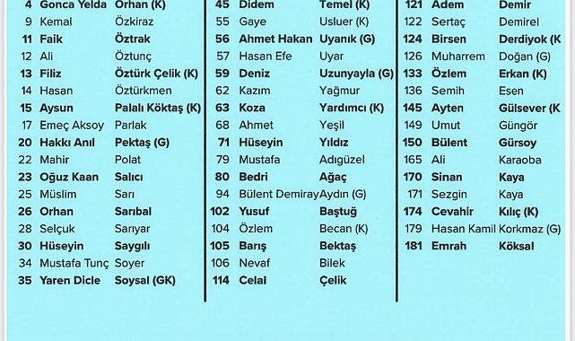 (ANKARA) - CHP'nin 21'nci Olağanüstü Kurultayı'nda, dün Oğuz Kaan Salıcı'nın, Parti Meclisi (PM) seçimleri için çıkaracaklarını duyurduğu Denge ve Dayanışma Listesi'nde yer alan isimler belli oldu. Listede 9 milletvekili bulunuyor.CHP'nin 21'inci Olağanüstü Kurultayı Yenimahalle'deki Nazım Hikmet Kültür Merkezi'nde toplandı. PM ile Yüksek Disiplin Kuruluna (YDK) üye olmak isteyen adayların başvuruları alınarak, kesinleşen liste açıklandı. Öte yandan, CHP'de "muhalifler" olarak bilinen isimlerin yer aldığı "Denge ve Dayanışma Listesi" belirlendi. Milletvekilleri Faik Öztrak, Ali Öztunç, Hasan Öztürkmen, Mahir Polat, Oğuz Kaan Salıcı, Orhan Sarıbal, Deniz Demir, Mustafa Adıgüzel ve Ali Karaoba'nın yer aldığı Denge ve Dayanışma Listesi'nde CHP'nin 7'nci Genel Başkanı Kemal Kılıçdaroğlu'nun avukatı Celal Çelik de yer alıyor. Denge ve Dayanışma Listesi'ndeki PM için aday olan isimler şöyle:Nihat Arda Mercan, Gonca Yelda Orhan, Kemal Özkiraz, Faik Öztrak, Ali Öztunç, Filiz Öztürk Çelik, Hasan Öztürkmen, Aysun Palalı Köktaş, Emeç Aksoy Parlak, Hakkı Anıl Pektaş, Mahir Polat, Oğuz Kaan Salıcı, Müslim Sarı, Orhan Sarıbal, Selçuk Sarıyar, Hüseyin Saygılı, Mustafa Tunç Soyer, Yaren Dicle Soysal, Esat Şengül, Didem Temel, Gaye Usluer, Ahmet Hakan Uyanık, Hasan Efe Uyar, Deniz Uzunyayla, Kazım Yağmur, Koza Yardımcı, Ahmet Yeşil, Hüseyin Yıldız, Mustafa Adıgüzel, Bedri Ağaç, Bülent Demiray Aydın, Yusuf Baştuğ, Özlem Becan, Barış Bektaş, Nevaf Bilek, Celal Çelik, Deniz Demir, Adem Demir, Sertaç Demirel, Birsen Derdiyok, Muharrem Doğan, Özlem Erkan, Semih Esen, Ayten Gülsever, Umut Güngör, Bülent Gürsoy, Ali Karaoba, Sinan Kaya, Sezgin Kaya, Cevahir Kılıç, Hasan Kamil Korkmaz, Emrah Köksal.YDK için ise Zuhal Mercan, Ebru Okay, Sevilhan Yılmaztürk Sağlam, Ali Yücal, Yiğit Acar, Arif Burak Adanur, Sabri Arpaç, Recep Bulut, Tayfun Ceyhan, Onur Sergen Doğan, Çetin Düzce, Fezayir Karadağ ve Selim Karahan aday gösterildi.