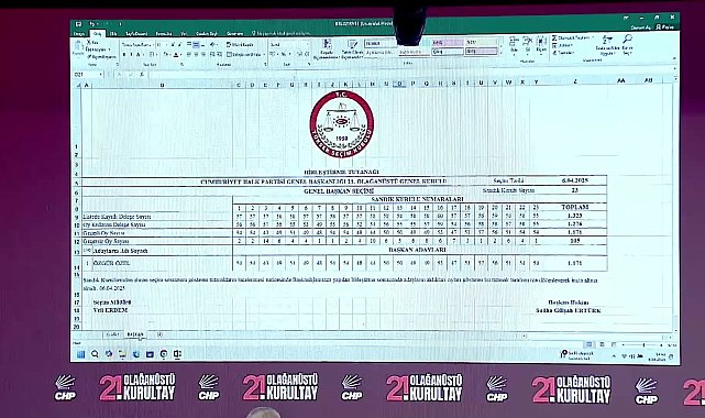 CHP'nin 21'inci Olağanüstü Kurultayı, Yenimahalle'de Nazım Hikmet Kültür Merkezi'nde toplandı. Toplantıda, Divan Başkanlığının oluşturulmasının ardından konuşmalar yapıldı ve ardından Genel Başkanlık seçimine geçildi.Saat 12.30'da başlayan ve 14.15'e kadar süren oy kullanma işlemlerinin ardından, kesin olmayan sonuçları Divan Başkanı Denizli Büyükşehir Belediye Başkanı Bülent Nuri Çavuşoğlu açıkladı.Çavuşoğlu, partinin bin 323 kayıtlı delegesinden bin 276'sının oy kullandığını, 105 delegenin oyunun geçersiz sayıldığını belirtti.Çavuşoğlu, "Sayın Genel Başkanımız Özgür Özel'in bin 171 geçerli oyla Cumhuriyet Halk Partisi'nin, ülkemizin aydınlık yarınlarına doğru yapmış olduğu yolculukta önderimiz ve liderimiz olarak Türkiye'yi yeni umutlara taşıması dileğiyle partimize, ülkemize, her görüşten, fikri ne olursa olsun sağcısıyla solcusuyla Kürt'ü ile Türk'ü ile Alevisi ile Sünnisi ile liderliğini yapacak olduğunu buradan beyan ediyor, hepinizi saygıyla sevgiyle selamlıyorum hepimize hayırlı olsun" dedi.Kurultay'da Parti Meclisi ve Yüksek Disiplin Kurulu üyelerinin seçimine geçilecek.