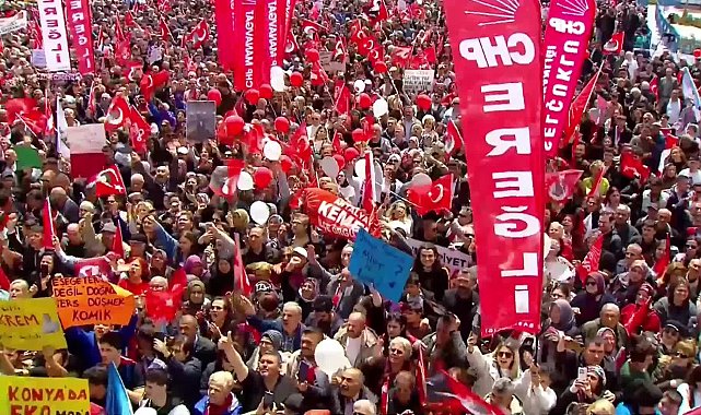 HABER: GÜLARA SUBAŞI- TANER ÖZAY / KAMERA: YASİN KABADAYI- RECEP TUNAHAN GÜLER (KONYA) - CHP’nin “Millet İradesine Sahip Çıkıyor” mitinglerinin dördüncüsüne ev sahipliği yapan Konya'da bugün on binlerce kişi kentin en büyük meydanı olan Kılıçarslan Meydanı'nı tamamen doldurdu. “İmamoğlu’na özgürlük” ve “Hak, hukuk, adalet” sloganları atan meydandaki on binlerce Konyalının yanı sıra, meydan çevresinde mitingi polis bariyerlerinin arkasından izleyen binlerce kişinin olması dikkat çekti. CHP, Konya'da bugüne kadar düzenlenmiş en geniş katılımlı mitingini gerçekleştirdi.CHP’nin cumhurbaşkanı adayı Ekrem İmamoğlu’na özgürlük ve erken seçim talebiyle her hafta sonu Türkiye’nin farklı bir ilinde düzenlediği “Millet İradesine Sahip Çıkıyor” temalı mitinglerinin bu haftaki adresi Konya oldu. Samsun, Yozgat ve Mersin’in ardından dördüncü il olan Konya’da binlerce vatandaş, 23 Mart’tan bu yana Silivri’de tutuklu bulunan “İmamoğlu’na özgürlük” demek için bir araya geldi.Yozgat'ın ardından Konya'da da büyük kalabalıkCHP'nin Konya mitingini düzenlediği ve yaklaşık 90 bin kişilik olduğu belirtilen Kılıçarslan Meydanı görülmemiş düzeyde bir katılıma ev sahipliği yaptı. Siyasi ve toplumsal analizlere neden olan Yozgat mitinginin ardından, AK Parti'nin diğer kalesi olarak görülen Konya'da da on binlerce yurttaş CHP mitingine katılarak adalet talebini dile getirdi. Hafta boyunca ilçe ziyaretleri yapıldıMiting hazırlıkları bir hafta öncesinden CHP Konya İl Başkanlığı ve genel başkan yardımcıları, milletvekilleri ve PM üyelerinden oluşan bir CHP heyetiyle yürütüldü. Heyetler Konya’nın farklı ilçelerine yaptıkları ziyaretlerle sendikalar, odalar ve STK’lar ile Konyalının, esnafın, çiftçilerin sorunlarını dinledi. Meydanı dolduran yurttaşlar arasında ilçelerden ve köylerden mitinge katılmak için gelenler dikkat çekti.Meydanda iki otobüs konumlandırıldı. Miting otobüsünün yanına iki dev led ekran konuldu. Vinçler yardımıyla bayraklar asıldı. İmamoğlu ve Özel’in fotoğrafının bulunduğu “Millet İradesine Sahip Çıkıyor” yazılı dev pankart da dikkat çekti.Sıkı güvenlik önlemi Hazırlıklar kapsamında mitingden iki gün önce, Çumra ilçesinde duyuru çalışması yapan İl Başkan Yardımcısı ve Merkez İlçe Başkan Yardımcısının da bulunduğu sesli yayın aracının geçişi sırasında bir saldırgan tarafından havaya kuru sıkı silahla iki el ateş açılması tepki çekmişti. Konya Büyükşehir Belediye Başkanı Uğur İbrahim Altay CHP’li bir gencin sevinçten havaya ateş açtığını söylese de CHP’liler ise bu açıklamaları, “olayların üstünü örtmek” olarak nitelemişti.Konya Büyükşehir Belediyesi’nin verilerine göre 22 bin metrekarelik, 88-90 bin kişiyi ağırlayabilen Kılıçarslan Meydanı’nda düzenlenen miting için polis sıkı güvenlik önlemleri aldı. Meydanda saat 12.00’ye kadar köpekli bomba araması yapıldı. Yurttaşlar, saat 12.00’den itibaren üstleri aranarak meydana alınmaya başlandı. Polisin arama noktasında zaman zaman yığılmalar medyada geldi. Miting başlamadan önce, yığılmanın önlenmesi için ses aracından yapılan anonslarla polisten işlemleri hızlandırması talep edildi. Erdoğan'a son genel seçimde yüzde 73 oy verildi, 31 Mart'ta "sarı kart" gösterildi2023 genel seçimlerinde Cumhurbaşkanı Recep Tayyip Erdoğan’ın yüzde 72,99’luk oy oranına sahip olduğu Konya, 31 Mart 2024 yerel seçimlerinde ise yüzde 49,44’lük oy oranıyla belediyeyi AK Parti’li Altay’a teslim etti. Seçimlerde Yeniden Refah Partisi’nin (YRP) adayı Mehmet Köseoğlu’nun yüzde 23,48’lik oy alması, “Konya, AK Parti’ye sarı kart gösterdi” yorumlarını beraberinde getirmişti. Yerel seçimlerde CHP, kentteki belediye sayısını birden beşe çıkararak Konya’da varlığını hissettirmeye başlamıştı.İki yılın ardından ilk mitingKonya Merkez’de CHP’nin son mitingini Ekrem İmamoğlu, 8 Mayıs 2023 tarihinde, Millet İttifakı’nın Cumhurbaşkanı Yardımcısı Adayı olarak Anıt Meydan’da yaptı. Ardından CHP Genel Başkanı Özgür Özel, 8 Ocak 2025’te Konya’nın Cihanbeyli ilçesinde belediye ziyareti yaparak yurttaşa hitap etti. Cumhurbaşkanı Erdoğan’ın son Konya mitingi ise 17 Mart 2024’te, AK Parti’nin yerel seçim kampanyası kapsamında, bugün CHP'nin miting yaptığı Kılıçarslan Meydanı’nda düzenlenmişti. Bu miting Erdoğan’ın Konya’da gerçekleştirdiği en büyük halk buluşması olarak tanımlanırken Erdoğan, miting sırasında alanda 110 bin kişinin olduğunu ifade etmişti.CHP’nin Konya mitingi, bugüne kadar Konya’da yapılmış en büyük mitinglerden biri oldu. Meydan tamamen dolarken binlerce Konyalının da mitingi polis barikatlarının arkasından, alana girmeden izlediği görüldü.Çiftçi yoğun katılım gösterdi, kürsüden seslendi: Bizler telef edilirsek bütün ülke telef olurCHP İl Başkanı Bekir Yaman, otobüs üstünden Silivri’de tutuklu bulunan İmamoğlu’nun mesajını okudu. Türkiye’nin tahıl ambarı olarak anılan Konya’da en mağdur kesimlerden biri olan çiftçilerin mitinge yoğun katılımı dikkat çekti. Mitingde otobüs üstünden konuşan Konyalı çiftçi Hatice Sarı’nın sözleri yoğun alkış aldı. Sarı, Erdoğan’ın “Bakalım cumhurbaşkanlığı hevesi yolunda daha kaç CHP’li siyaset yolunda telef olup gidecek” sözlerine atıfta bulunarak “Okuyan telef, köylü telef, üreten telef. Bizler telef edilirsek bütün ülke telef olur. Kanal İstanbul’a vereceğin parayı çiftçiye versen de ben burada hiç konuşmasaydım olmaz mıydı? Üretimi desteklemeyen, köylünün yanında olmayan bir iktidar istemiyoruz. Bizleri telef edemezsiniz. Halkız, hakl