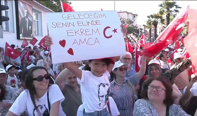 Alanda bir çocuğun taşıdığı “Geleceğim senin ellerinde Ekrem Amca”, “Türkiye fazla sağa kaydı, biraz sola çekme zamanı”, “Millet büyüktür”, “Ekrem her yerde”, “Baskılara inat sevgi büyüyor”, “Yok bu işin heybesi, turpu. 13’üncü Cumhurbaşkanı İmamoğlu”, “Ekrem Başkan’a selam, mitinglere devam”, “Garibanın yakasından düşün artık”, “Ne saraylar senin ne Ekremler” yazılı pankartlar dikkat çekti.