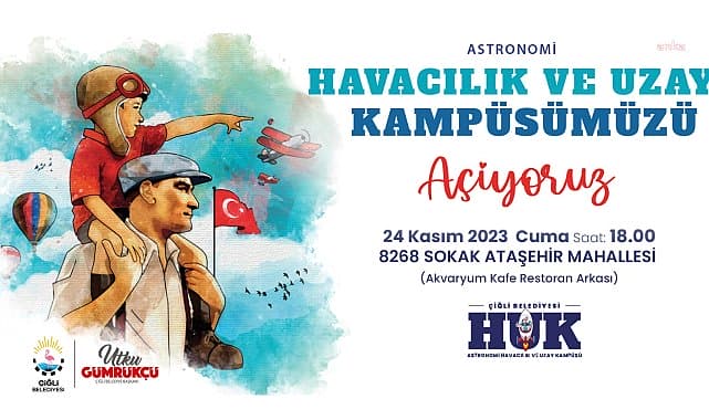 Çiğli Belediyesi tarafından genç nesillerin astronomi ve uzay bilimiyle bağını kuvvetlendirmek amacıyla projelendirilen Çiğli’nin ilk havacılık müzesi Astronomi Havacılık ve Uzay Kampüsü (HUK), 24 Kasım Cuma günü düzenlenecek törenle hizmete açılacak.Başkan Utku Gümrükçü’nün bizzat ilgilendiği ve yoğun mesai harcadığı Astronomi Havacılık ve Uzay Kampüsü, 24 Kasım Cuma günü düzenlenecek törenle hizmete girecek. Ataşehir Mahallesi’nde gerçekleştirilecek tören saat 18:00’de başlayacak. Açılış töreninde 24 Kasım Öğretmenler Günü dolayısıyla ilçede görev yapan öğretmenler için de kokteyl düzenlenecek.BAŞKAN GÜMRÜKÇÜ: “ÇİĞLİ TARİHİNDE BİR İLKE ŞAHİTLİK EDECEĞİZ”Çiğli tarihinde açılacak ilk havacılık müzesinin kendilerine nasip olmasından dolayı mutlu ve gururlu olduklarını ifade eden Çiğli Belediye Başkanı Utku Gümrükçü, “Yarınlarımızın teminatı olarak gördüğümüz çocuklarımızı ve gençlerimizi geleceğe bilimsel ve akılcı eğitim metotlarıyla hazırlamak için çalışmalarımızı sürdürüyoruz. Bunu yalnızca okullarda ve eğitim destek merkezlerimizde değil Ulu Önderimiz Gazi Mustafa Kemal Atatürk’ün ‘İstikbal Göklerdedir’ ilkesinden hareketle hizmete açacağımız Astronomi Havacılık ve Uzay Kampüsü’nde de yapacağız. Genç arkadaşlarımız kampüsümüze gelerek astronomi, havacılık ve uzay bilimiyle ilgili bilgi edinebilecek, havacılık araçlarını yakından inceleme şansı bulacaklar. Tüm hemşehrilerimizi Çiğli tarihinden ilk kez yaşanacak bu açılışta heyecanımıza eşlik etmeye bekliyoruz.” ifadelerini kullandı.