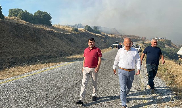 (AYDIN) - Çine'nin Ünlüce Mahallesi'nde başlayıp Kırkışık Mahallesi'nde kontrol altına alınan yangınla mücadele çalışmalarını yakından takip etmek için bölgeye giden Çine Belediye Başkanı Mehmet Kıvrak, Kaymakam Murat Büyükköse ile bölgede incelemelerde bulundu. Ünlüce Mahallesi'nde başlayan ve kısa sürede büyük bir alana yayılan yangına müdahalede Çine Belediyesi ekipleri de etkin bir şekilde yer aldı. Yangının başlamasından sonra kısa sürede bölgeye giderek çalışmalara katılan ekipler, belediyeye ait iş makineleriyle destek verdi. Başkan Kıvrak da Çine Kaymakamı Murat Büyükköse, Belediye Başkan Yardımcısı Timuçin Karabulut, Belediye Meclis üyeleri ile çalışmaları yakından takip etti.Kıvrak, “Yangını kontrol altına almak için cansiperane çalışan tüm ekiplerimize kolaylıklar diliyor, yangından etkilenen hemşehrilerimize geçmiş olsun dileklerimizi iletiyorum. Söndürme çalışmalarını yakından takip etmeye, tüm imkanlarımızla destek olmaya devam edeceğiz” dedi.
