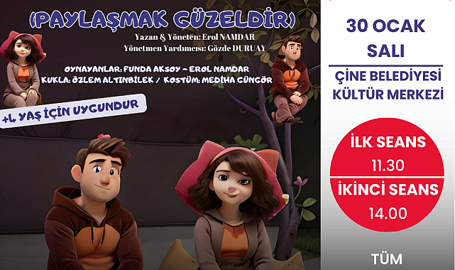 Çine Belediyesi yarıyıl tatilini değerlendirmek isteyen çocukları, 'Momo ile Kurbi' adlı tiyatro oyunu ile buluşturacak.Paylaşmanın öneminin anlatıldığı oyun, 30 Ocak Salı günü saat 11.30 ve 14.00’te Çine Belediyesi Kültür Merkezi’nde iki seans halinde sahnelenecek. Efes Sanat Merkezi’nin hazırladığı, Erol Namdar’ın yazdığı, Gözde Duruay’ın yönettiği 'Momo ile Kurbi' oyunu 4 yaş üstü çocukların beğenisine sunulacak.Tüm Çineli çocukları tiyatroya davet eden Belediye Başkanı Mehmet Kıvrak, “Çocuklarımızı yarıyıl tatilinde eğlenirken öğrenecekleri, sosyalleşebilecekleri, aileleri ile birlikte kaliteli vakit geçirebilecekleri tiyatro oyunu ile buluşturacak olmanın heyecanı içindeyiz. Tüm çocuklarımızı ve değerli ailelerini ücretsiz tiyatro oyunumuza bekliyor, hep birlikte keyifli bir gün geçirmeyi diliyorum” diye konuştu.