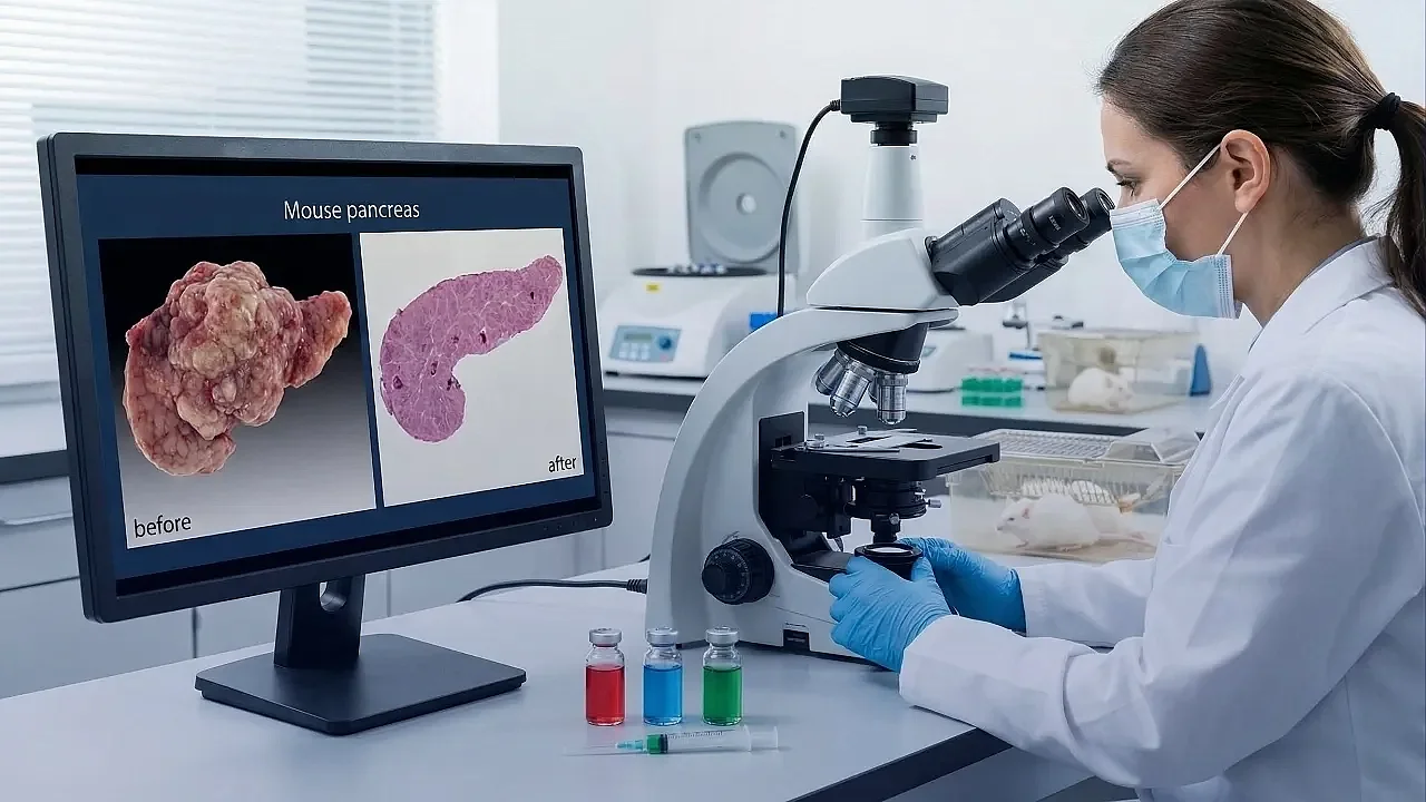 İspanya Ulusal Kanser Araştırma Merkezi’nden (CNIO) ekip, farelerde yürüttükleri çalışmada üçlü tedavi yaklaşımıyla pankreas tümörlerini ortadan kaldırabildiklerini ve tümörlerin yeniden ortaya çıkmasını engellediklerini bildirdi. Araştırmacılar, bu sonucun pankreatik duktal adenokarsinom hastalarının sağkalımını artırabilecek yeni kombinasyonların tasarlanmasına kapı aralayabileceğini ifade etti.