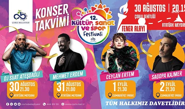 30 Ağustos-2 Eylül 2023 tarihleri arasında gerçekleştirilecek 12. Çorlu Kültür, Sanat ve Spor Festivali’nde bu yıl da ünlü sanatçılar sahne alacak.