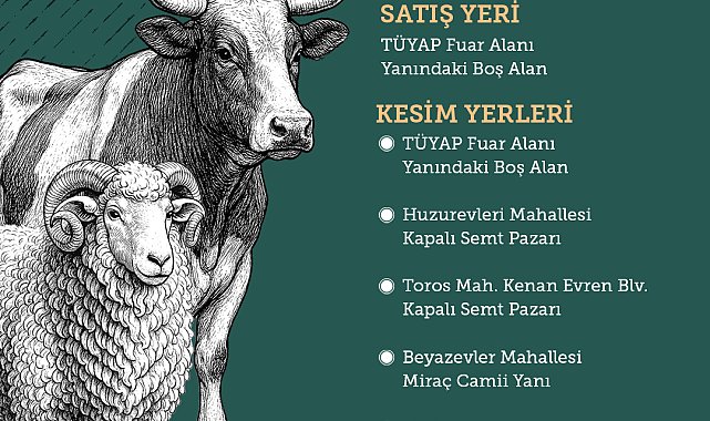 (ADANA) - Çukurova Belediyesi, kurban satış noktası olarak önceki yıllarda olduğu gibi TÜYAP fuar alanının yanındaki boş alanı belirledi. Ücretsiz kurban kesim hizmeti ise ilçenin beş ayrı noktasında gerçekleştirilecek.Çukurova Belediyesi Veteriner İşleri Müdürlüğü tarafından yapılan açıklamada, kurban satışının Yüzüncüyıl Mahallesi Fuar Alanı yanındaki boş alanda yapılacağı kaydedildi. Ücretsiz kesim hizmetinin ise Yurt Mahallesi Sosyete Pazarı İçi, Toros Mahallesi Kenan Evren Bulvarı Semt Pazarı, Huzurevleri Mahallesi Kapalı Semt Pazarı, Beyazevler Mahallesi Miraç Camii Yanı ve Yüzüncüyıl Mahallesi Fuar Alanı yanındaki boş alanda verileceği bildirildi.Bayramın ilk iki günü, 08.00 ile 17.00 saatleri arasında kurban kesim noktalarında din görevlisi, kasap, veteriner hekim ve sağlık ekibi görev yapacak.