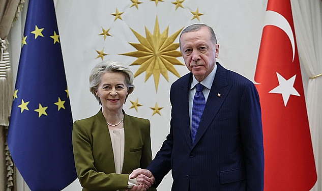 (ANKARA) - Cumhurbaşkanı Recep Tayyip Erdoğan, Cumhurbaşkanlığı'nda Avrupa Birliği (AB) Komisyonu Başkanı Ursula von der Leyen ile bir araya geldi.Cumhurbaşkanlığı'nın resmi internet sitesinden yapılan açıklamada, "Cumhurbaşkanı Recep Tayyip Erdoğan, Türkiye’ye ziyarette bulunan Avrupa Birliği (AB) Komisyonu Başkanı Ursula von der Leyen ile Cumhurbaşkanlığı Külliyesinde bir araya geldi. Görüşmede, Dışişleri Bakanı Hakan Fidan da yer aldı" denildi.