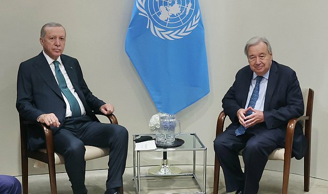 (ANKARA) - Cumhurbaşkanı Recep Tayyip Erdoğan, Birleşmiş Milletler 80. Genel Kurulu için bulunduğu New York'ta Birleşmiş Milletler Genel Sekreteri Antonio Guterres ile bir görüşme gerçekleştirdi.İletişim Başkanlığından yapılan açıklamaya göre, görüşmede İsrail’in Gazze’ye yönelik saldırıları başta olmak üzere bölgesel ve küresel konular ele alındı.Cumhurbaşkanı Erdoğan görüşmede İsrail saldırganlığının sadece Filistinlileri değil, bölgesel ve küresel barışı da hedef aldığını, uluslararası toplumun Gazze’ye insani yardımların kesintisiz erişimi için İsrail’e yönelik baskısını artırması gerektiğini ifade etti.Erdoğan, Ukrayna-Rusya savaşının sona erdirilmesi için Türkiye’nin gayretlerini artırdığını, acil ateşkes ve kalıcı barış için çabaların yoğunlaştırılmasının önemli olduğunu belirtti.Cumhurbaşkanı Erdoğan görüşmede, Birleşmiş Milletler sisteminde revizyon ihtiyacının son yıllarda net bir biçimde ortaya çıktığını, Türkiye’nin yapılacak çalışmalara her türlü katkıyı sağlamaya devam edeceğini, dünya barışının korunmasının öneminin son yıllarda dünyanın karşı karşıya kaldığı sınamalarda daha iyi anlaşıldığını belirtti.