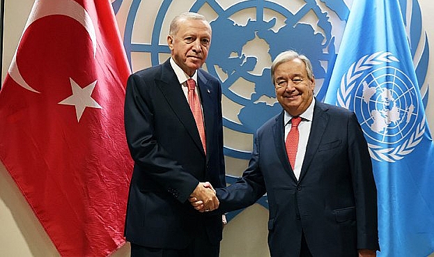 (ANKARA) - Cumhurbaşkanı Recep Tayyip Erdoğan, Birleşmiş Milletler (BM) Genel Sekreteri Antonio Guterres ile telefonda görüştü. Erdoğan görüşmede, Suriye ihtilafında serinkanlılıkla yönetilen yeni bir aşamaya gelindiğini, Suriye’nin daha büyük istikrarsızlık yaşamamasının ve sivil kayıplar vermemesinin Türkiye’nin en büyük temennisi olduğunu belirtti. Cumhurbaşkanı Erdoğan, Milli Güvenlik Kurulu toplantısı esnasında BM Genel Sekreteri Guterres ile telefon görüşmesi yaptı. Cumhurbaşkanlığı'nın resmi sosyal medya hesabından yapılan paylaşımda görüşmeye ilişkin şunlar kaydedildi:"Cumhurbaşkanımız Recep Tayyip Erdoğan, Birleşmiş Milletler Genel Sekreteri Antonio Guterres ile Millî Güvenlik Kurulu toplantısı esnasında bir telefon görüşmesi gerçekleştirdi.Görüşmede bölgesel ve küresel konular ele alındı. Cumhurbaşkanımız Erdoğan görüşmede, Suriye ihtilafında serinkanlılıkla yönetilen yeni bir aşamaya gelindiğini, Suriye’nin daha büyük istikrarsızlık yaşamamasının ve sivil kayıplar vermemesinin Türkiye’nin en büyük temennisi olduğunu ifade etti. Cumhurbaşkanımız Erdoğan, gelinen aşamada Suriye rejiminin ivedi bir biçimde kapsamlı siyasi çözüm için kendi halkıyla angaje olması gerektiğini belirtti. Cumhurbaşkanımız Erdoğan, Türkiye’nin tansiyonun düşürülmesi, sivillerin korunması ve siyasi sürecin önünün açılması için çaba gösterdiğini ve buna devam edeceğini ifade etti."