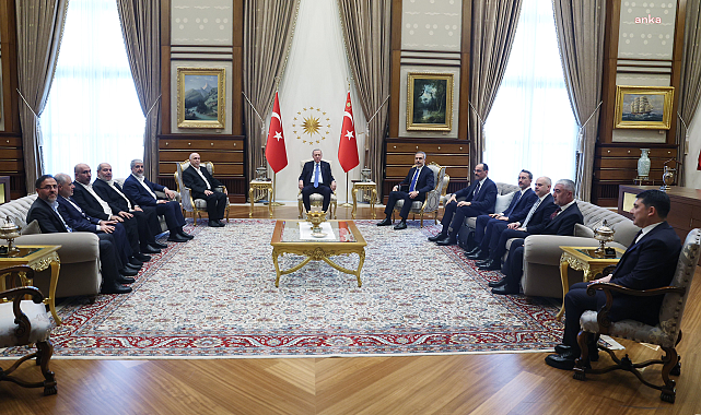 (ANKARA) - Cumhurbaşkanı Recep Tayyip Erdoğan, Hamas Şura Meclisi Başkanı Muhammed Derviş'i başkanlığındaki Hamas heyetini kabul etti.Erdoğan Dijital Medya isimli sosyal medya hesabından yapılan paylaşıma göre Cumhurbaşkanı Recep Tayyip Erdoğan, Hamas Şura Meclisi Başkanı Muhammed Derviş'i başkanlığındaki Hamas heyetini kabul etti. Kabulde Dışişleri Bakanı Hakan Fidan, MİT Başkanı İbrahim Kalın, Cumhurbaşkanlığı İletişim Başkanı Fahrettin Altun, Cumhurbaşkanı Dış Politika ve Güvenlik Başdanışmanı Akif Çağatay Kılıç ve Cumhurbaşkanlığı Özel Kalem Müdürü Hasan Doğan da yer aldı.