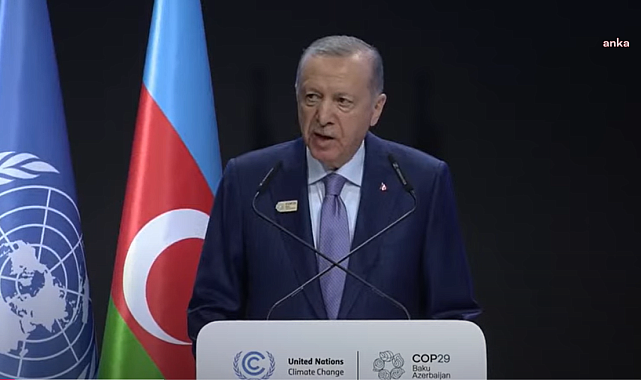 (ANKARA/BAKÜ) - Cumhurbaşkanı Recep Tayyip Erdoğan, Birleşmiş Milletler (BM) İklim Değişikliği Çerçeve Sözleşmesi 29. Taraflar Konferansı (COP29) Dünya Liderleri İklim Zirvesi'nde yaptığı konuşmada, “Yeşil finans stratejisini uygulama ve ulusal yeşil taksonomi oluşturma gayretlerimiz devam ediyor. Emisyon ticaret sistemini de ihtiva eden İklim Kanunumuzu çok yakında Meclisimize sunacağız” dedi.BM İklim Değişikliği Çerçeve Sözleşmesi 29. Taraflar Konferansı (COP29) Dünya Liderleri İklim Zirvesi'ne katılan Cumhurbaşkanı Erdoğan, zirvede Türkiye’nin İklim Değişikliği ile mücadele stratejisi ve vizyonuna ilişkin konuşma yaptı. Erdoğan, şunları söyledi:“2053 yılı için net sıfır emisyona ulaşma ve yeşil kalkınma vizyonumuz ekseninde kilit sektörlerimizi dönüştürüyoruz. Yeşil finans stratejisini uygulama ve ulusal yeşil taksonomi oluşturma gayretlerimiz devam ediyor. Emisyon ticaret sistemini de ihtiva eden iklim kanunumuzu çok yakında Meclisimize sunacağız.COP29 öncesinde 2 yılık şeffaflık raporumuzu ve uzun dönemli iklim stratejimizi yazmanlığa ilettik. 2024-2030 yıllarını kapsayan iklim değişikliği azaltım ve uyum strateji eylem planlarımızı uygulamaya aldık... Yenilenebilir enerjinin payını yüzde 59’a yükselttik. Bu oranla Avrupa’da beşinci, dünyada on birinci sıradayız. 2053 net sıfır emisyon hedeflerimiz için temel önceliklerimiz yenilenebilir enerji, enerji verimliliği ve nükleer enerjidir.“Nükleer enerjide 2050’de 20 bin megavatlık bir kapasiteye ulaşmayı hedefliyoruz”Bugün 31 bin megavat olan rüzgar ve güneş enerjisi kurulu gücümüzü 2035 yılında 120 bin megavata çıkaracağız. Nükleer enerjideyse, 2050 senesinde, 20 bin megavatlık bir kapasiteye ulaşmayı hedefliyoruz. 2024- 2030 yıllarını kapsayan Ulusal Enerji Verimliliği Eylem planımızda 100 milyon ton karbondioksit eşdeğeri emisyon azaltımı öngörüyoruz. Elektrikli milli otomobilimiz TOGG’u yaygınlaştırmaya devam ediyoruz.”“Tüm bu gayretlerin ekonomik maaliyeti çok yüksektir”Eşi Emine Erdoğan’ın himayesinde başlatılan ve küresel düzeye taşınan “Sıfır Atık Projesinin” de Türkiye’nin iklim değişikliyle mücadelesine ilave güç kattığını söyleyen Erdoğan, şöyle konuştu:“Bu sayede projenin başlangıcından bu yana 5,9 milyon ton sera gazı emisyonunun önüne geçtik. Su kaynaklarımızın etkin kullanımı için su verimliliği seferberliği ilan ettik. Milli ağaçlandırma günü olarak belirlediğimiz her 11 Kasım’da milyonlarca fidanı toprakla buluşturuyoruz. Tüm bu gayretlerin ekonomik maaliyeti çok yüksektir. Küresel mücadelemizi daha güçlü ve etkili kılmak bakımından bilhassa gelişmekte olan ülkelerin ihtiyaçlarına cevap verecek bir iklim finansmanı hedefinin bu zirvede belirleneceğine inanıyorum.“İsrail saldırıları, insani ve çevre felaketine sebep oluyor”Gelecek nesiller için “adil, sürdürülebilir ve doğaya saygılı bir dünyayı inşa etmek için Birleşmiş Milletler 79’ıncı Genel Kurulu’nda ‘Gelecek Paktını’ kabul ettiklerini” dile getiren Cumhurbaşkanı Erdoğan, Bugün burada gelecek nesillere daha adil bir dünya bırakmayı konuşurken, İsrail’in Filistin ve Lübnan’ı hedef alan hukuk, ahlak ve vicdan dışı saldırıları devam ediyor” dedi. İsrail’in Gazze ve Lübnan’a yönelik saldırılarının insani ve çevre katliamlarına neden olduğunu vurgulayan Erdoğan, şunları kaydetti:“Mevcut hükümet maalesef çocuk, kadın ve yaşlı demeden insanları katletmeyi büyük bir çevre kıyımına yol açmayı sürdürüyor. İsrail saldırıları nedeniyle toprağa ve yer altı sularına sızan kimyasallar, Gazzeli çocukların geleceğini şimdiden karanlığa bürümüştür. Bu ağır insani ve çevre felaketine sebep olanların uluslararası mahkemelerde, bunun hesabını vermeleri gerektiğini düşünüyoruz.2026 Birleşmiş Milletler İklim Değişikliği 31’inci Taraflar Konferansı’na ev sahipliği yapmak için adaylığımızı açıkladık. Adaylığımıza destek veren ülkelere teşekkür ediyor, değerlendirmeleri sürenlerin desteğini bekliyoruz."